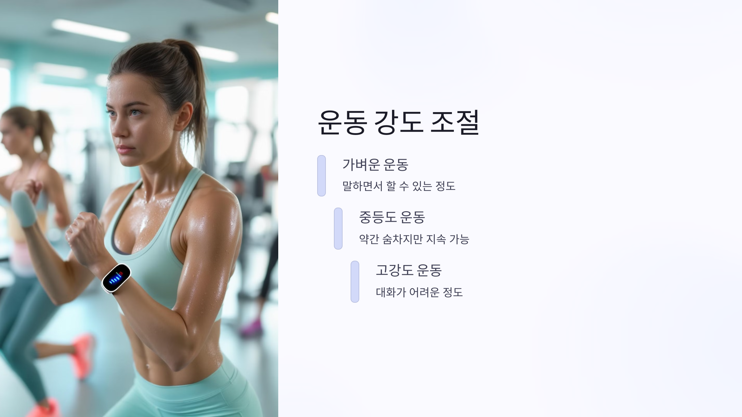 🔴 고강도 운동: 대화가 어려울 정도로 숨이 찬 상태 (예: 조깅, 줄넘기)