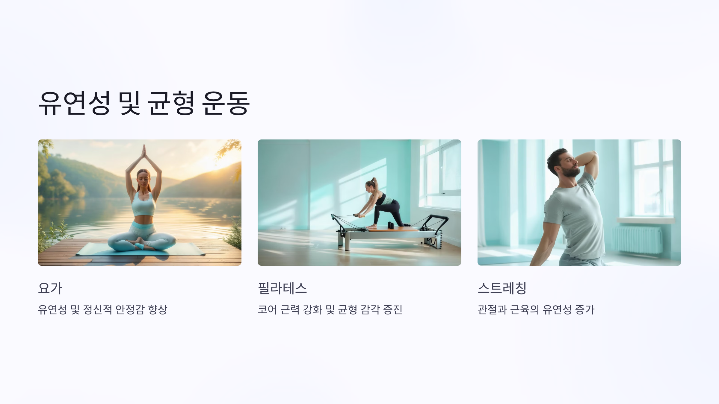 | 💪 필라테스 | 30~40분 | 코어 근력 강화 & 균형 감각 향상 |