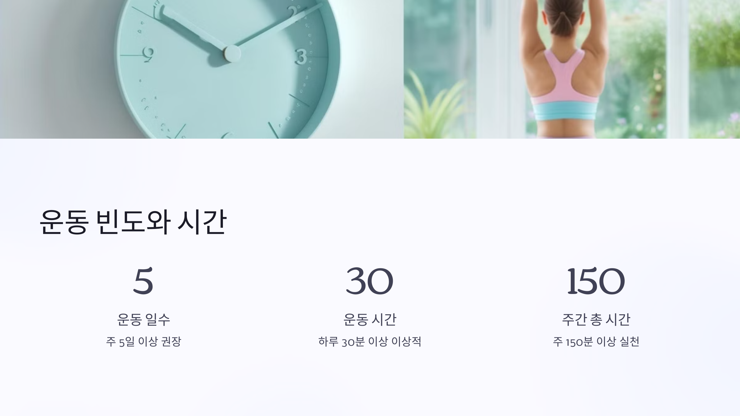 🎯 꾸준함이 핵심! 일주일에 최소 150분 이상의 운동을 목표로 해보세요.
