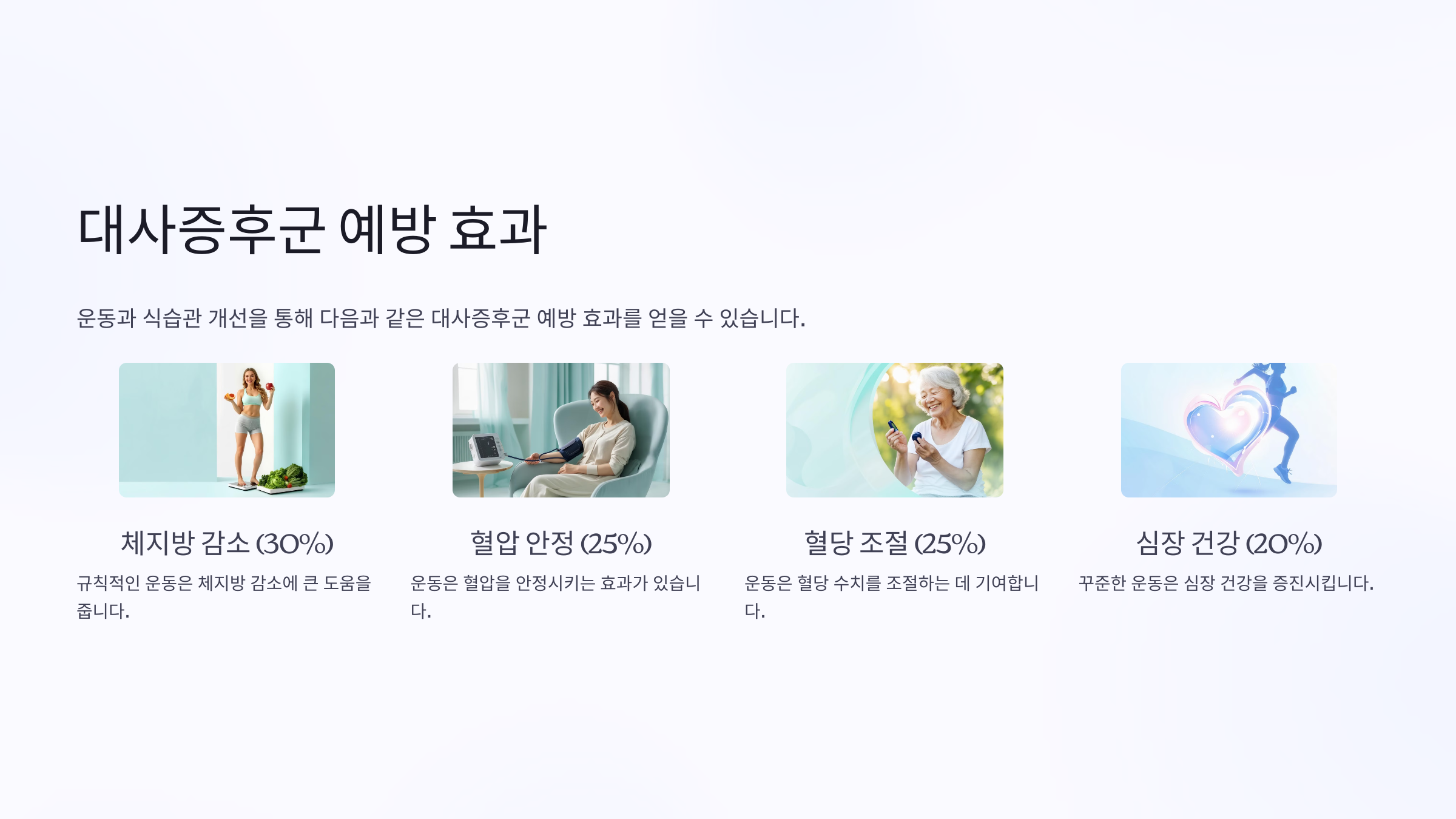 대사증후군 예방을 위해서는 운동과 식단 관리가 함께 이루어져야 해요! 올바른 식습관과 규칙적인 운동으로 건강한 몸을 만들어 보세요!