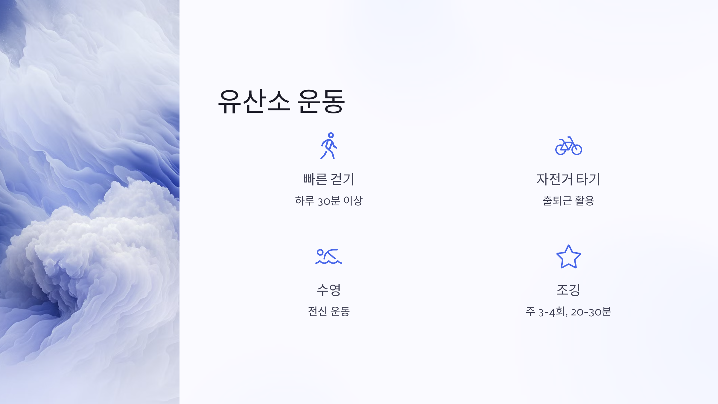 ✔ 유산소 운동 → 체지방 감소 & 심혈관 건강 개선