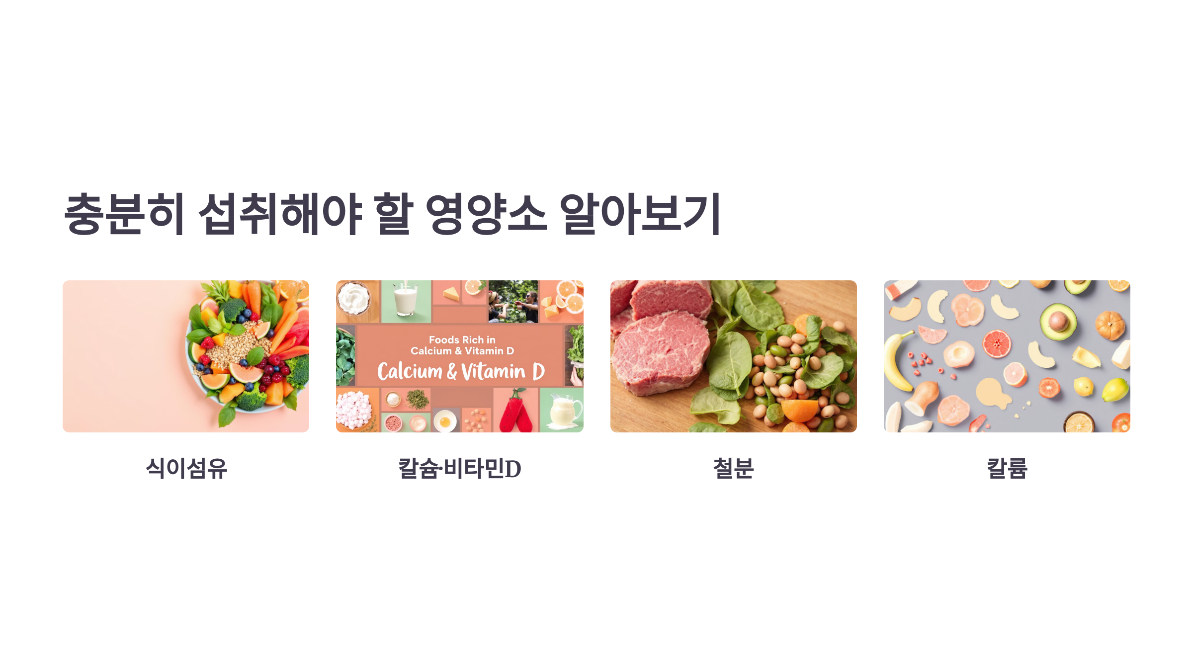 다음 영양소는 대부분 부족하기 쉬우므로 적극 섭취해야 해요: