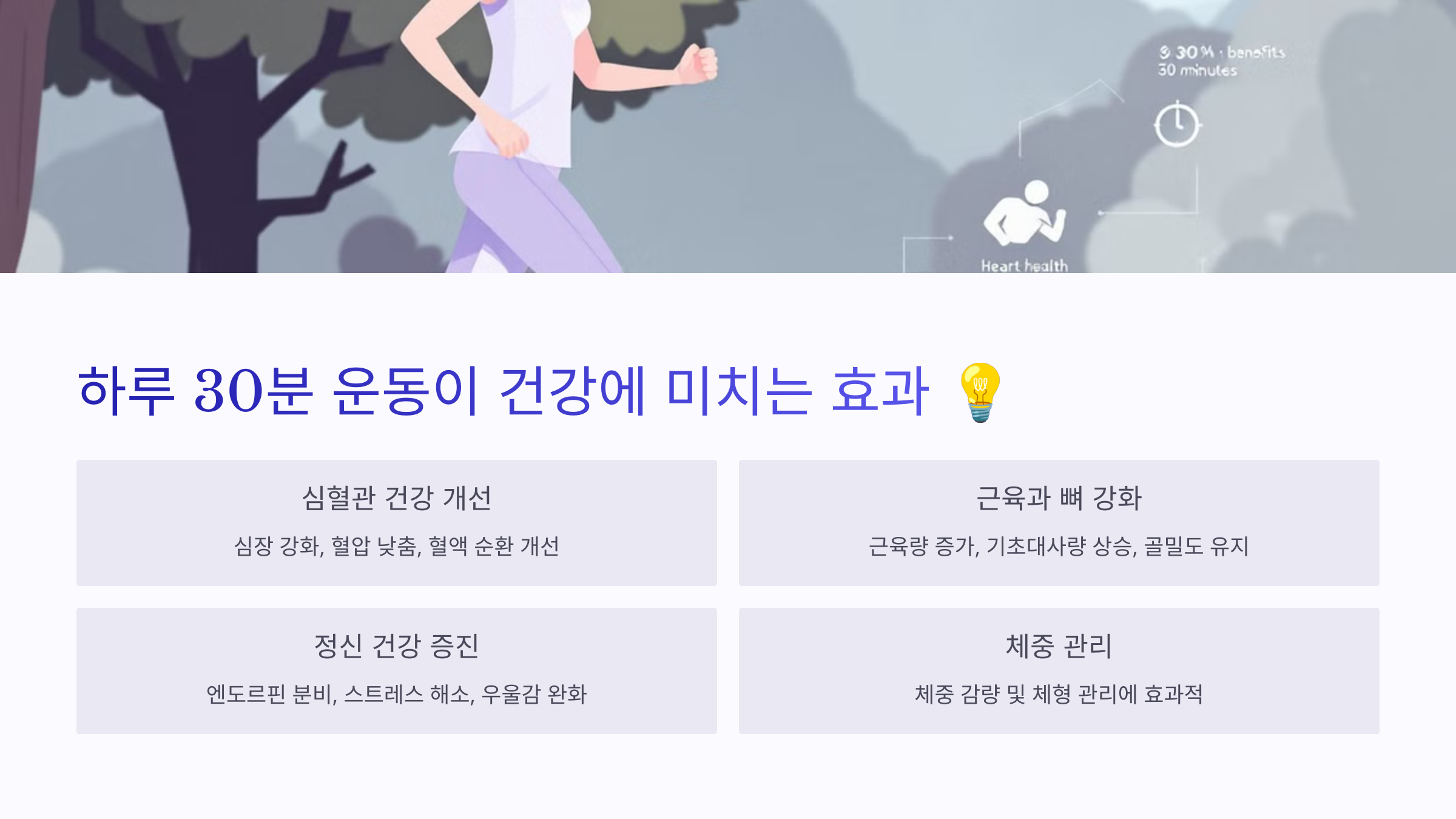 자, 이제 첫 번째로 하루 30분 운동이 건강에 미치는 효과부터 알아볼까요? 💡