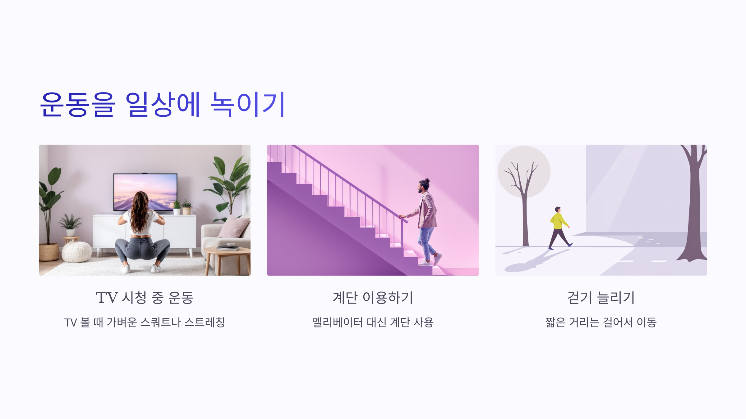 - 📌 TV를 볼 때 가볍게 스쿼트를 하거나 스트레칭을 해보세요.