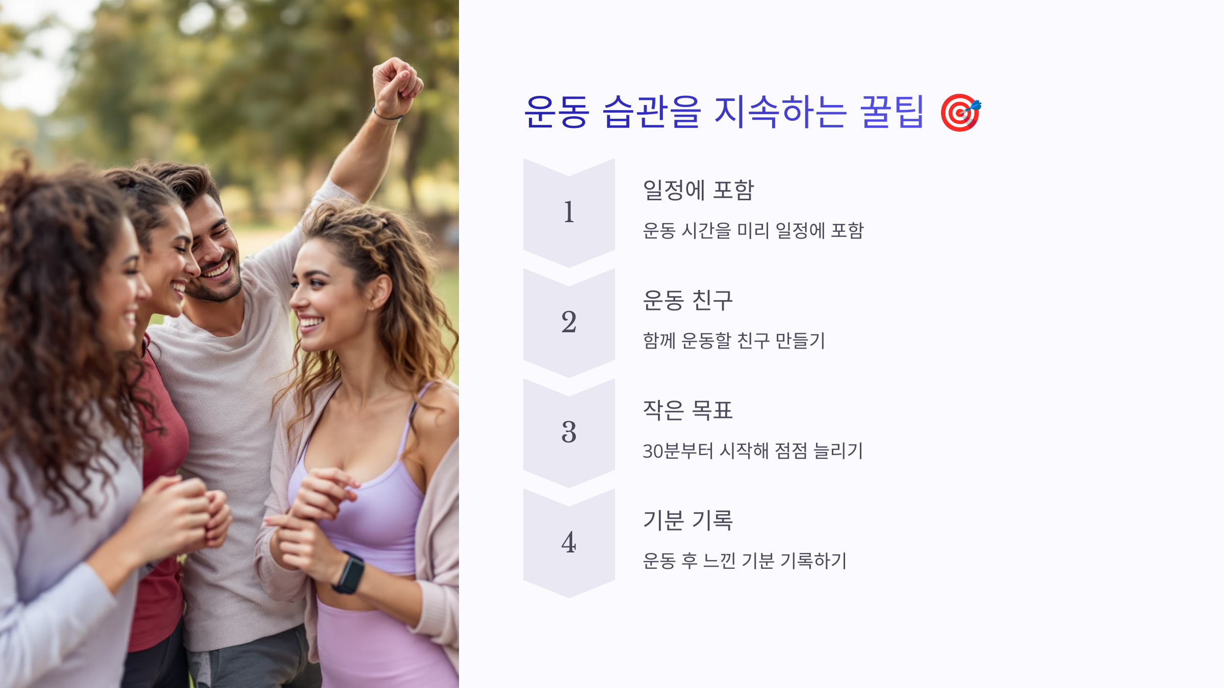 - 📌 단조로운 운동보다 여러 가지 운동을 조합하면 재미있게 지속할 수 있어요!