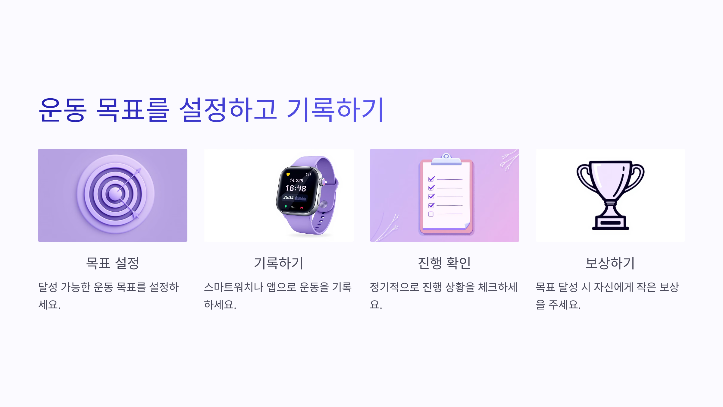 - 📌 걷기, 요가, HIIT, 근력 운동 등 다양한 운동을 조합해보세요.