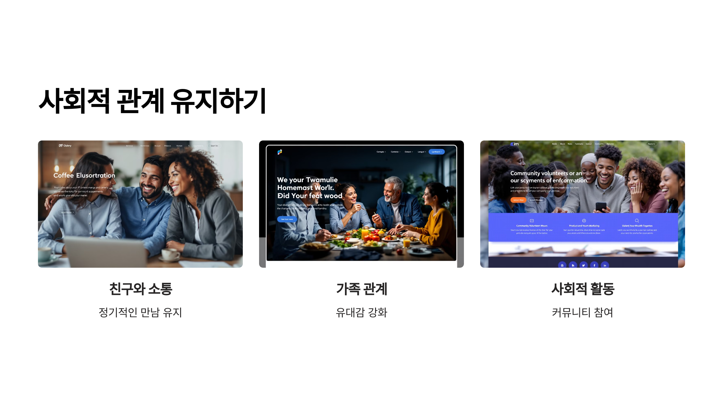 사회적 관계도 건강에 중요한 영향을 미쳐요! 외로움과 스트레스는 건강을 악화시킬 수 있기 때문이죠.