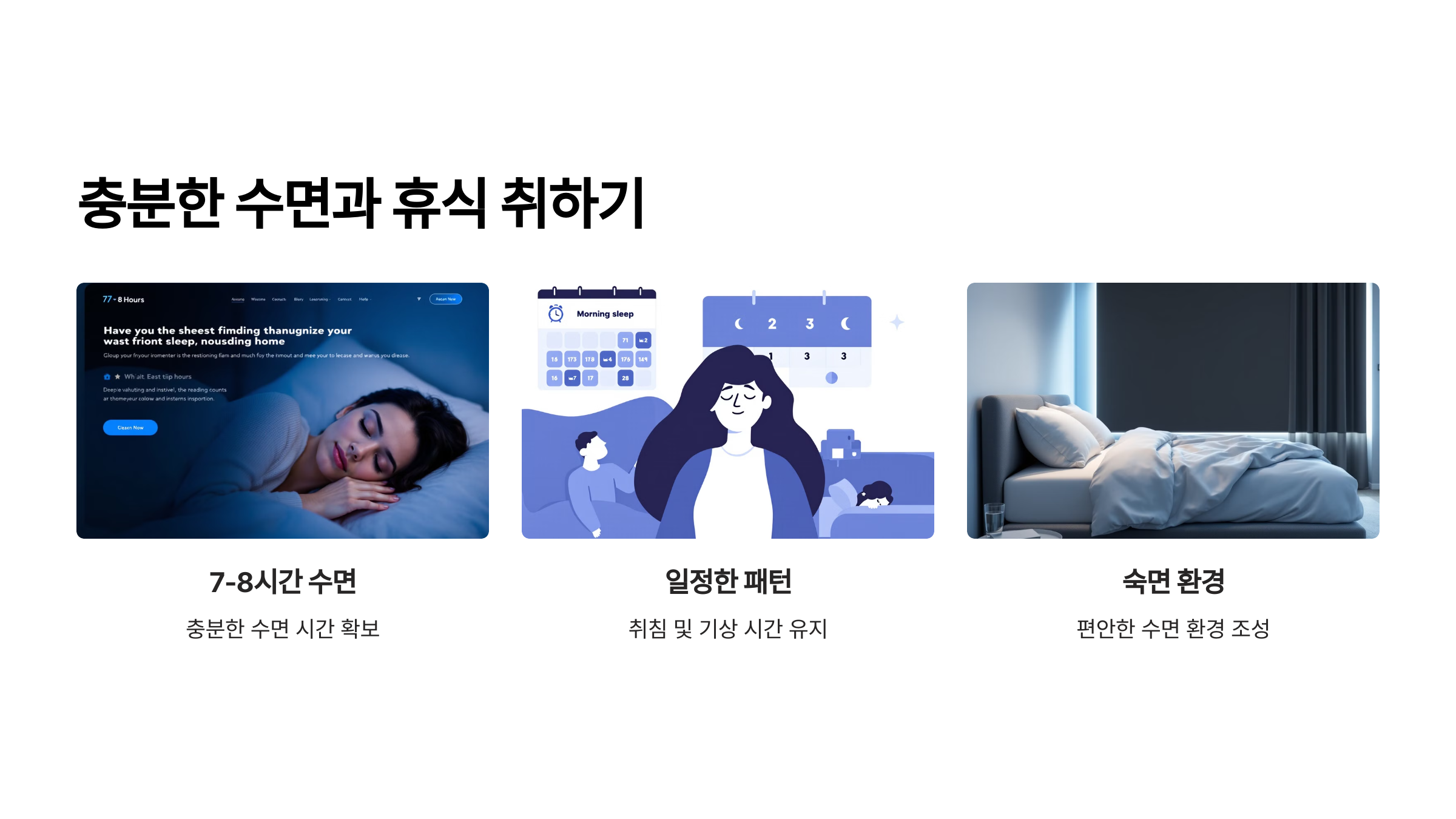 - ✅ 하루 7~8시간의 충분한 수면 확보하기