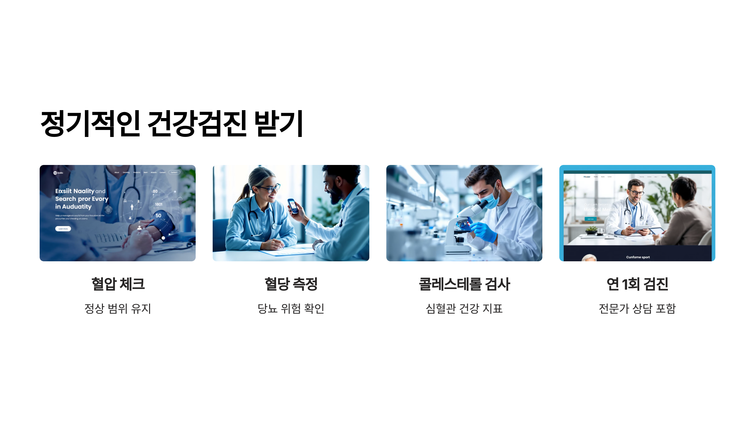 - ✅ 혈압, 혈당, 콜레스테롤 수치를 정기적으로 체크하기 - 혈압, 혈당, 콜레스테롤 수치를 정기적으로 확인하여 조기에 이상을 발견하고 대응하세요.