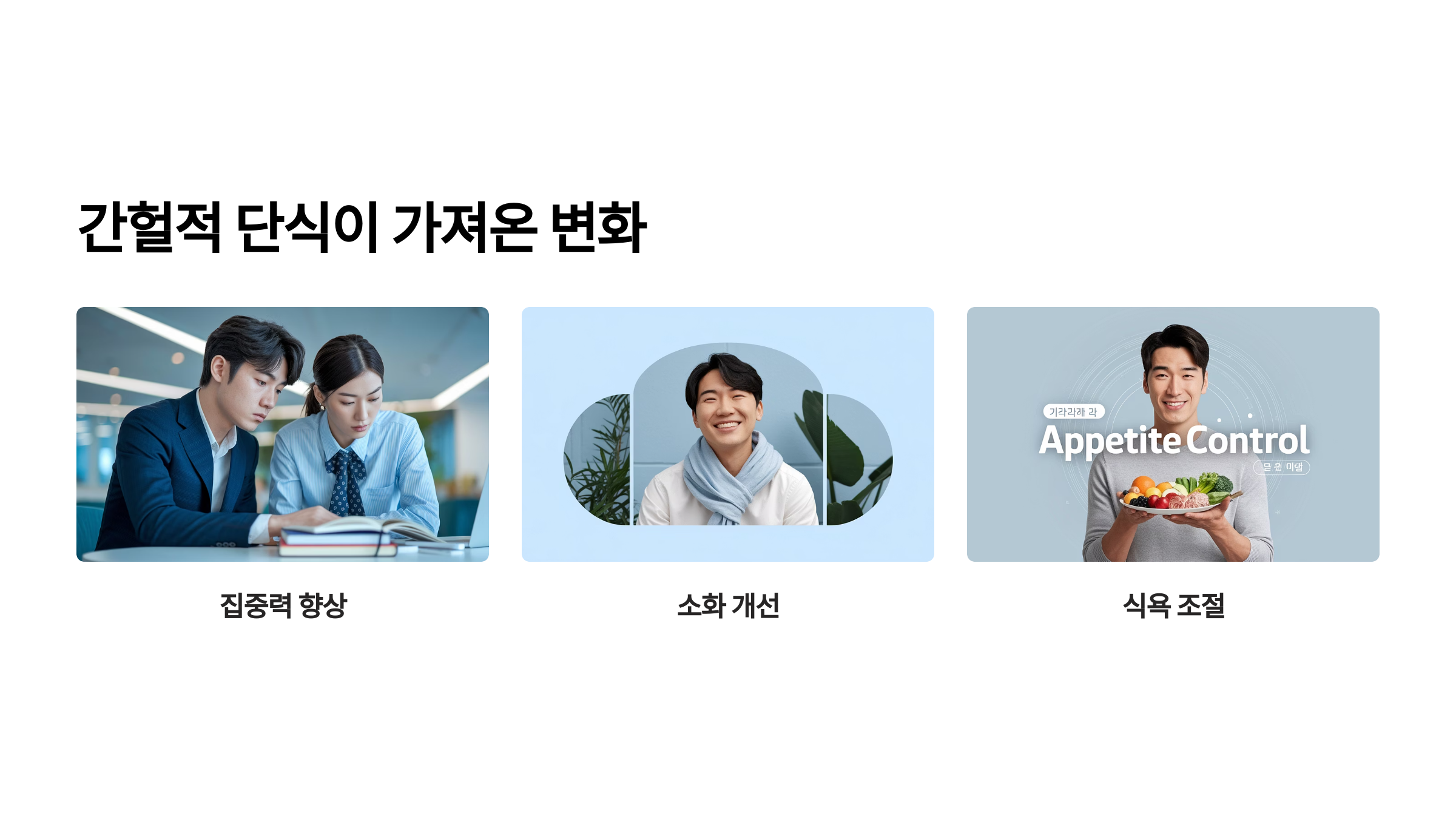 - 식욕 조절 호르몬 변화 → 과식 습관 자연스러운 개선