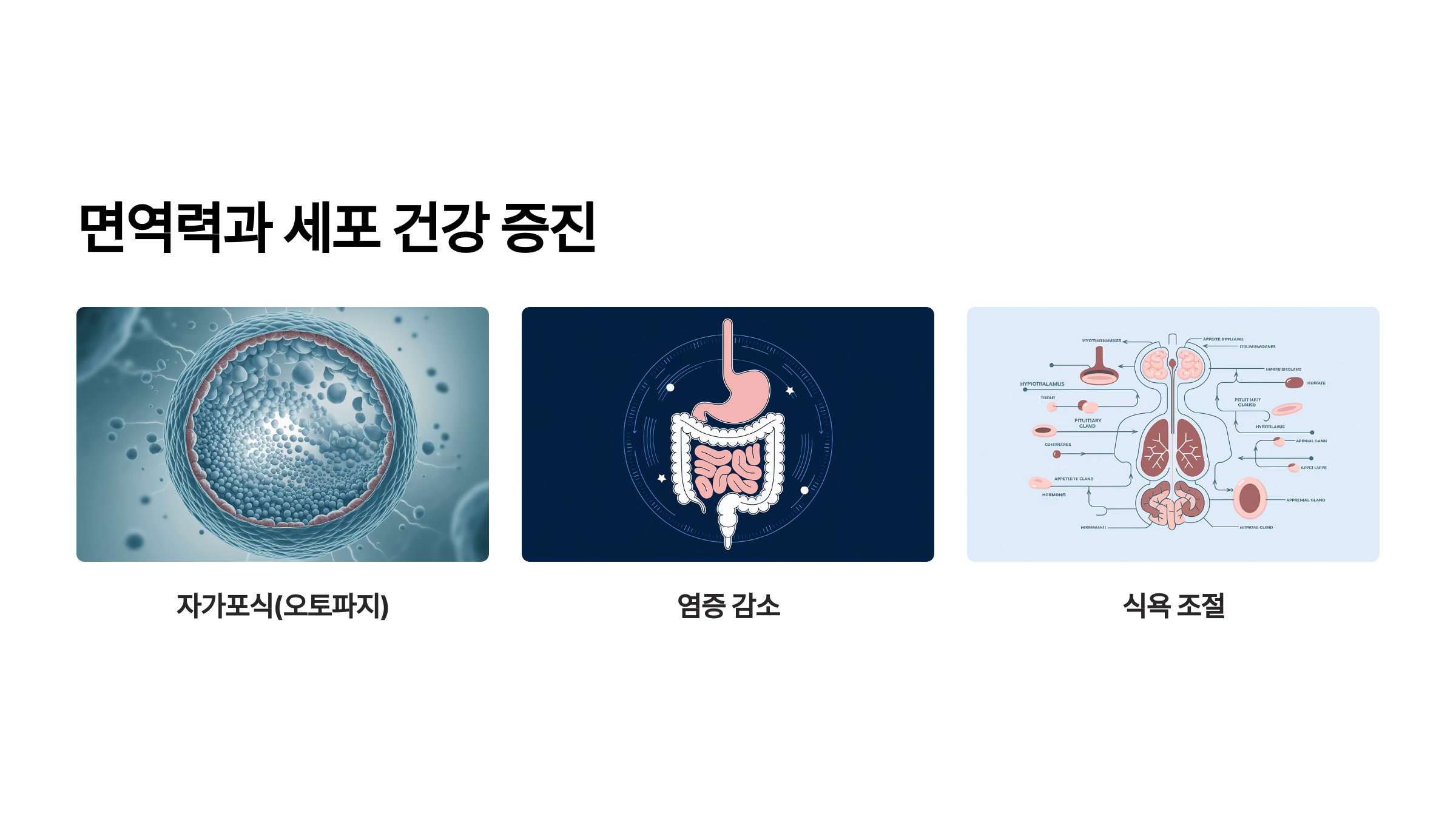 바로 자가포식(Autophagy) 기능이 활성화되면서 세포 노폐물이 제거되고, 염증이 줄어드는 효과도 따라옵니다.