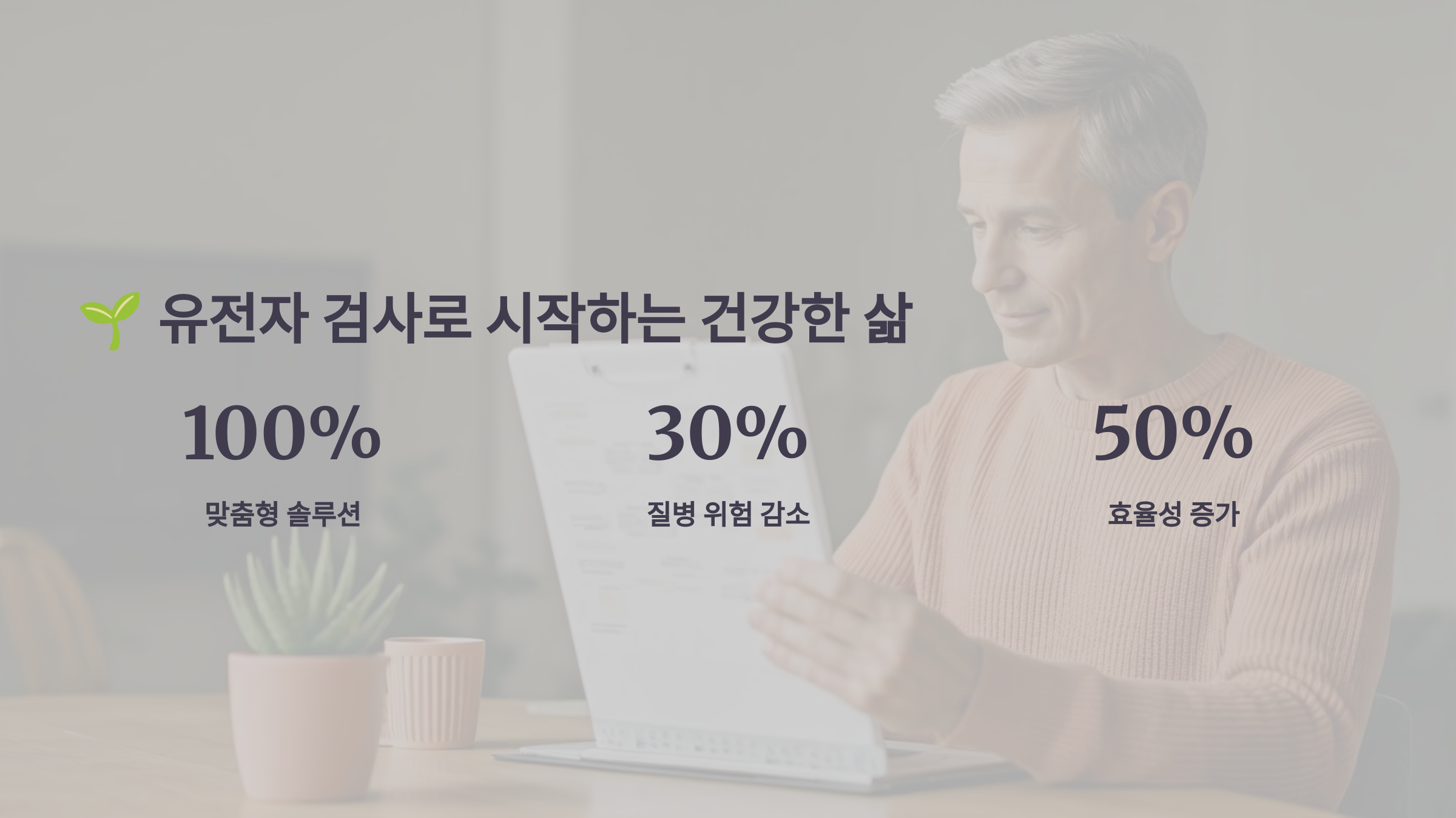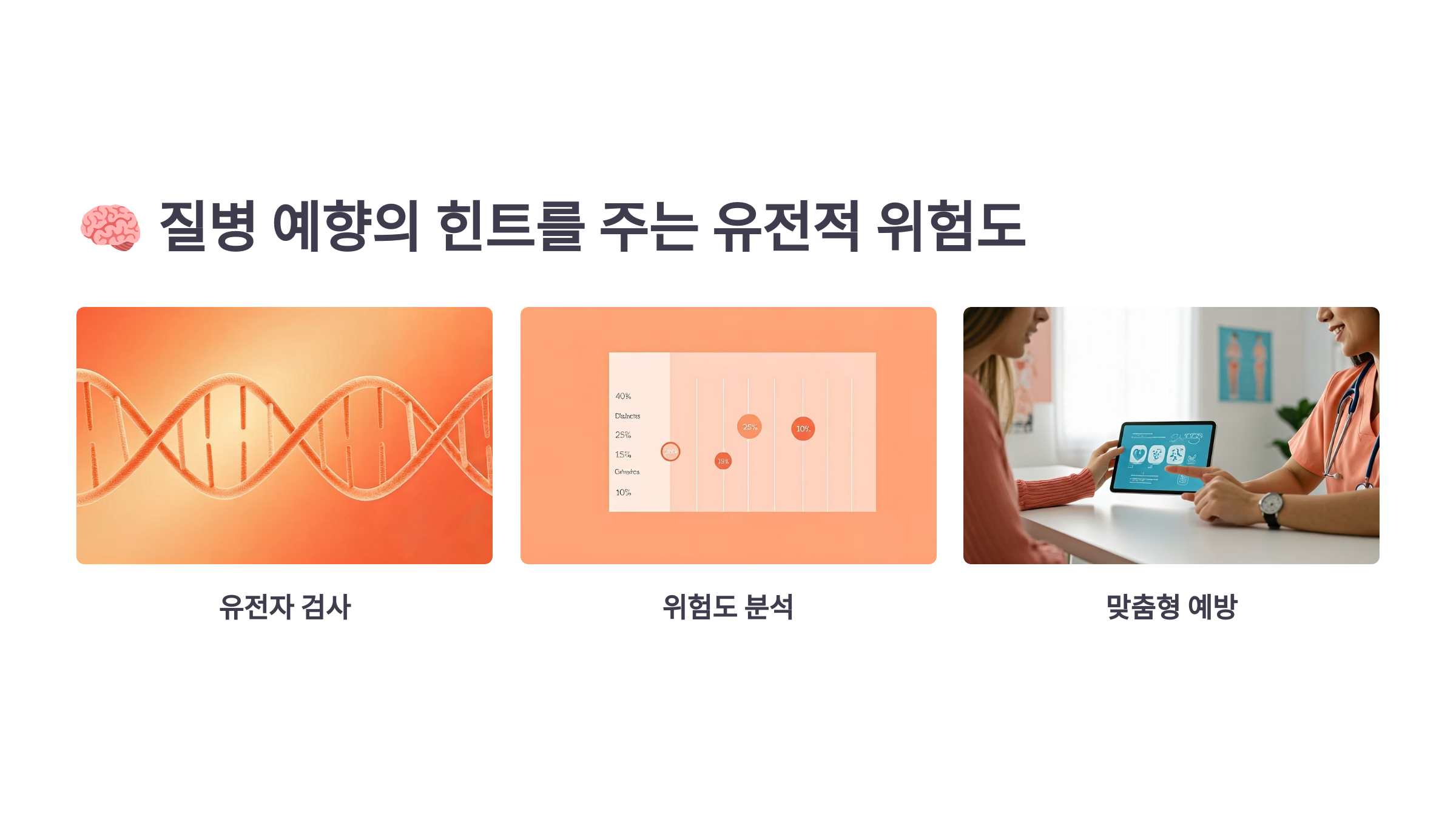 지금 내 몸 안에 숨어 있는 미래의 질병 정보를 확인해보세요. 그 한 걸음이 여러분의 삶을 바꿔줄 수 있습니다.