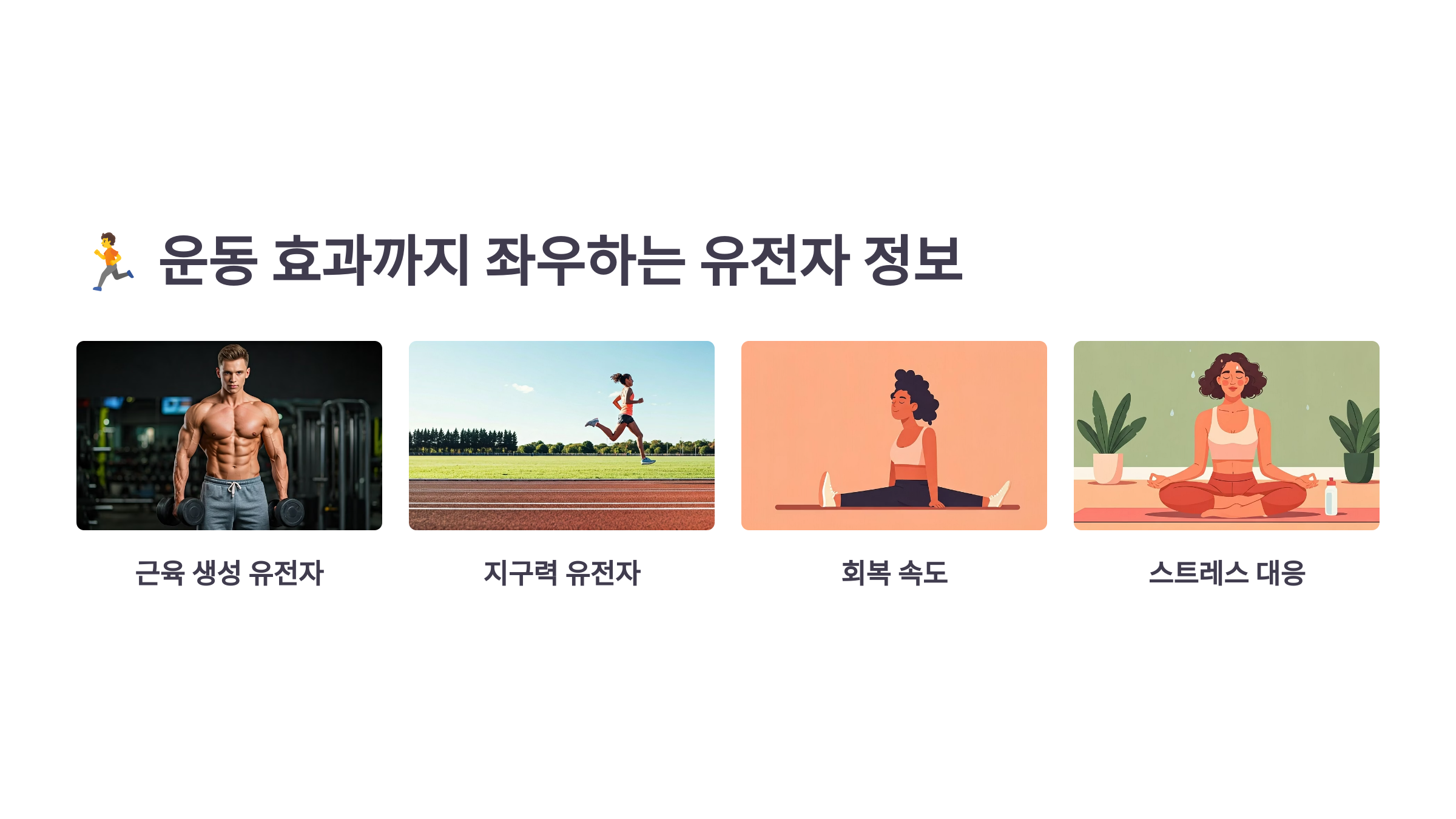 사람마다 유전적으로 근육 발달 능력, 회복 속도, 지구력 수준, 운동에 대한 반응성이 완전히 다르다는 사실! 🧬