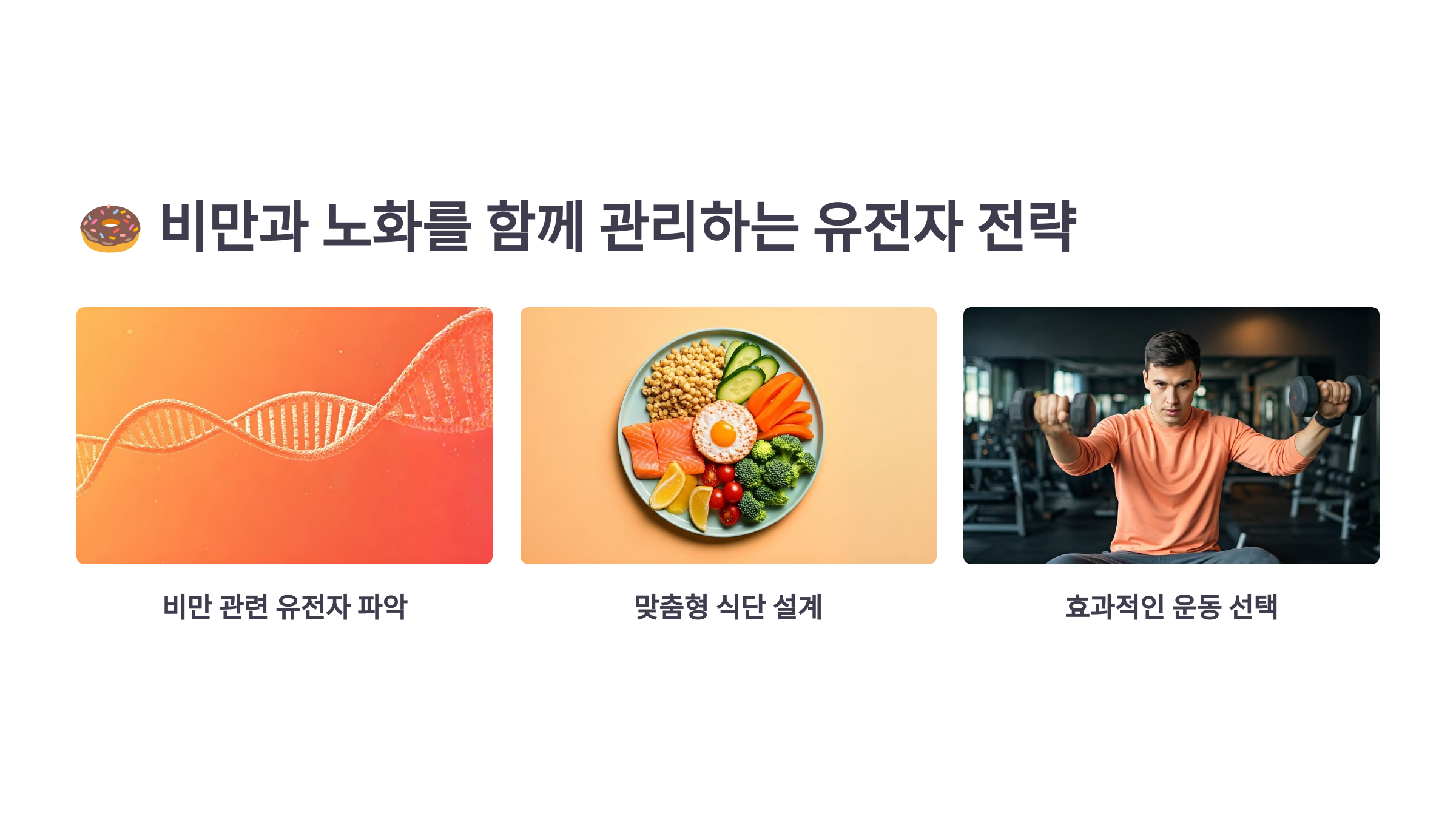 자신에게 맞지 않는 식재료를 피하고, 필요한 영양소만 정확히 보충하는 것! 바로 이것이 유전자 기반 식단 관리의 핵심입니다.