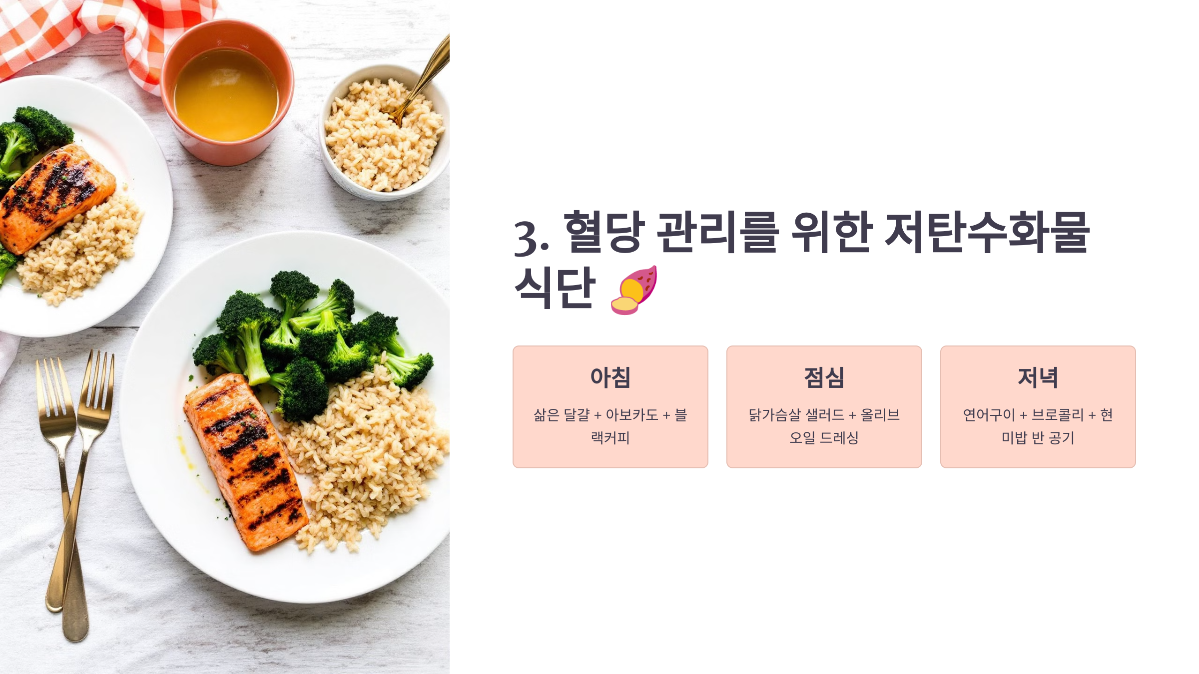 3. 혈당 관리를 위한 저탄수화물 식단 🍠
