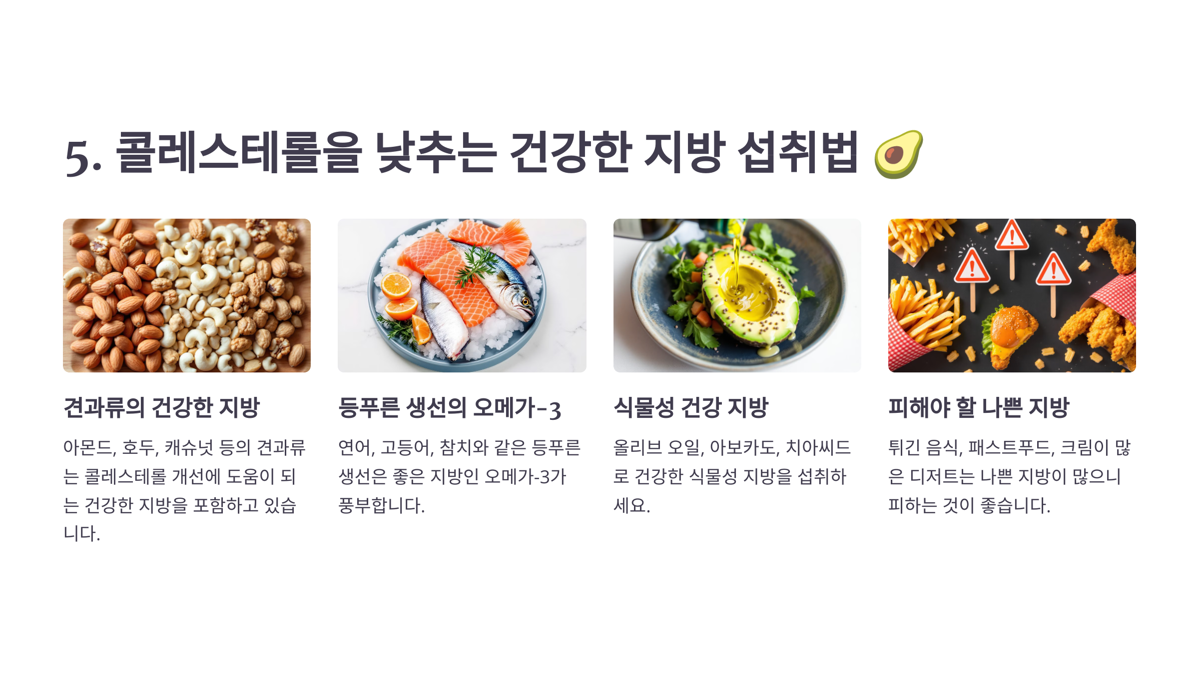 5. 콜레스테롤을 낮추는 건강한 지방 섭취법 🥑