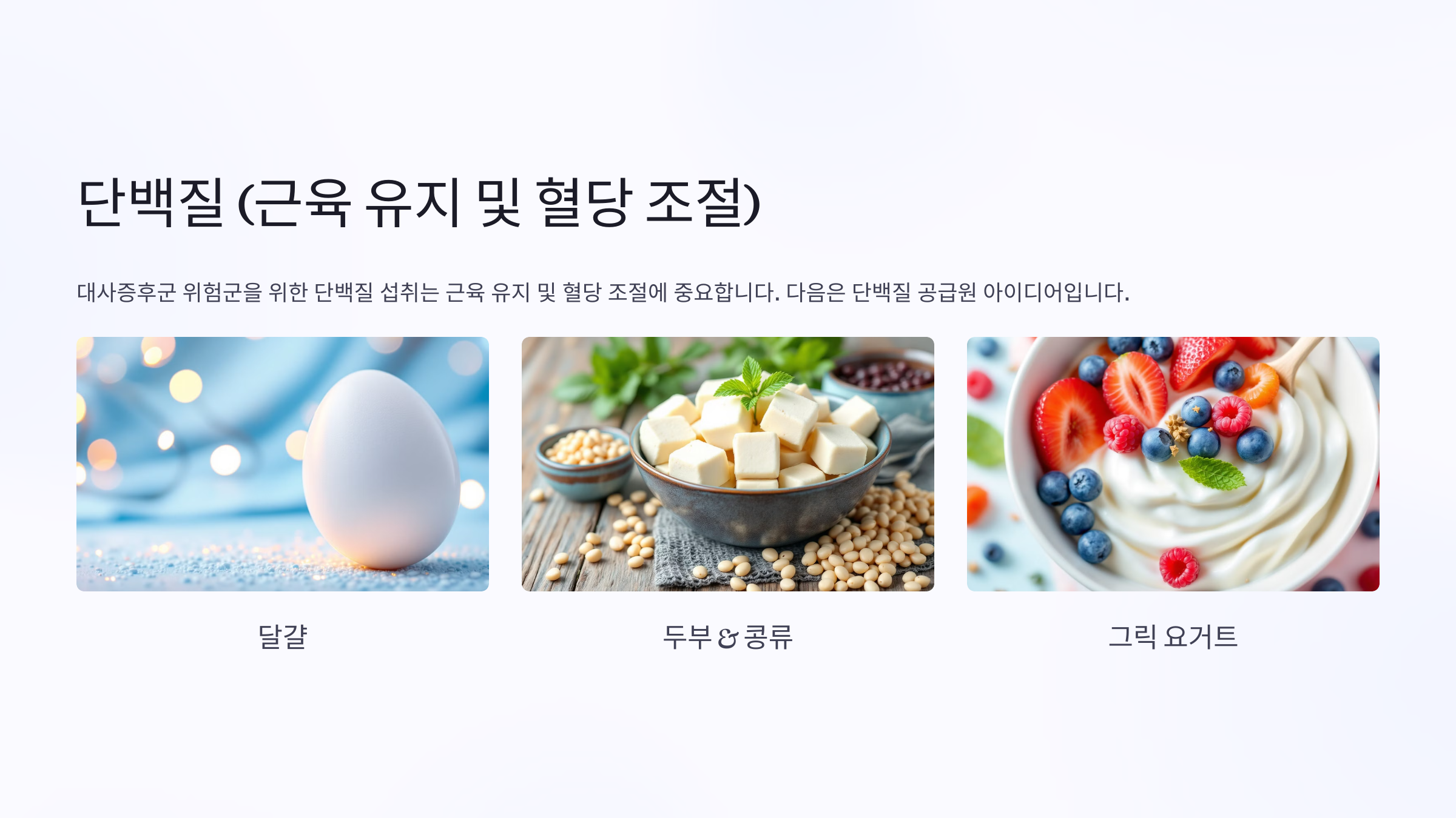 - ✔️ 단백질 섭취 강화 – 달걀, 두부, 콩류, 그릭 요거트