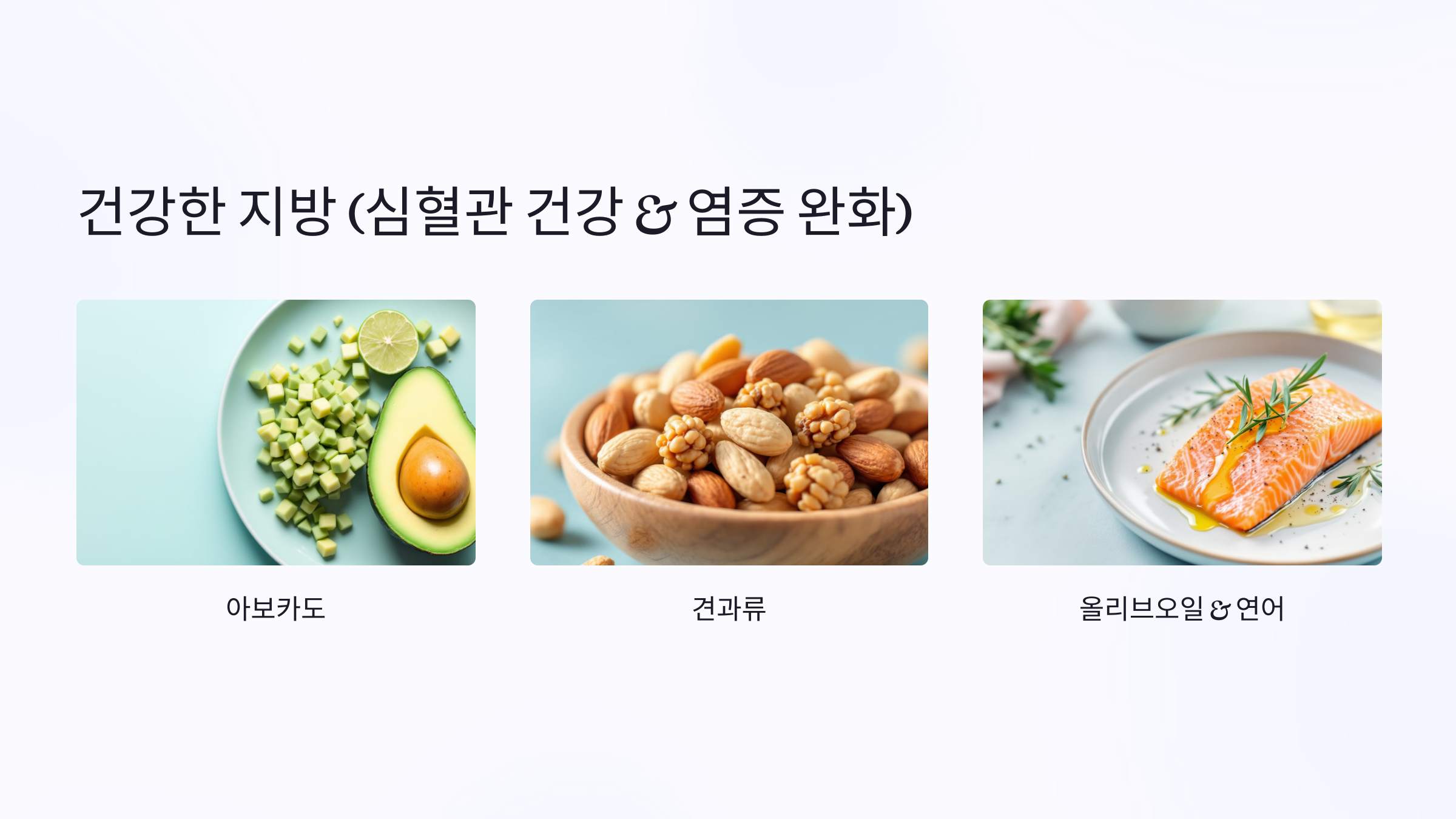 3️⃣ 건강한 지방 (심혈관 건강 & 염증 완화)