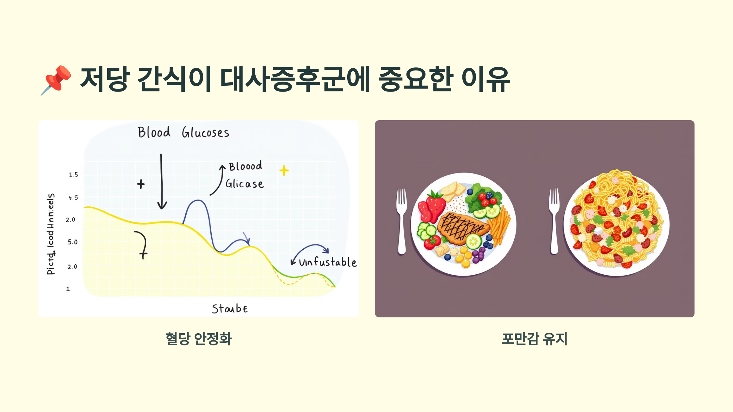 안녕하세요, 여러분! 😊 "간식이 건강에 해롭다?" 사실, 어떤 간식을 선택하느냐가 더 중요합니다! 특히 대사증후군 환자라면 혈당을 급격히 올리지 않으면서 포만감을 유지할 수 있는 저당 간식을 선택하는 것이 필수죠.