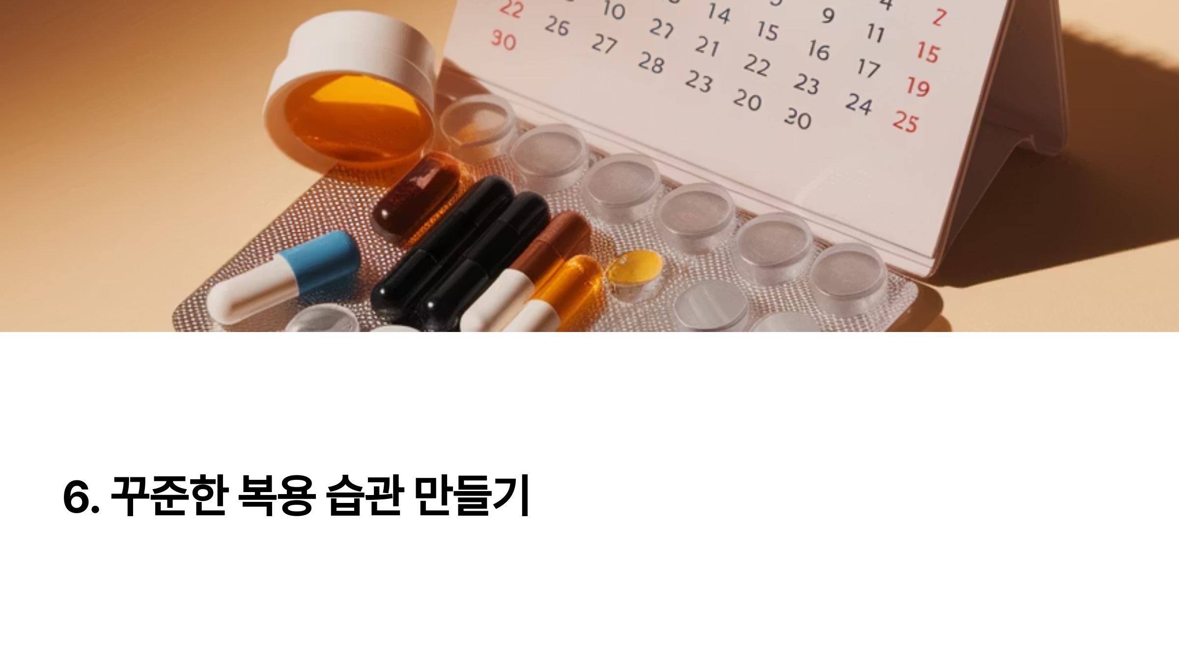 - 알람 설정, 복용 캘린더, 약통 등을 활용하면 잊지 않고 꾸준히 챙길 수 있어요.
