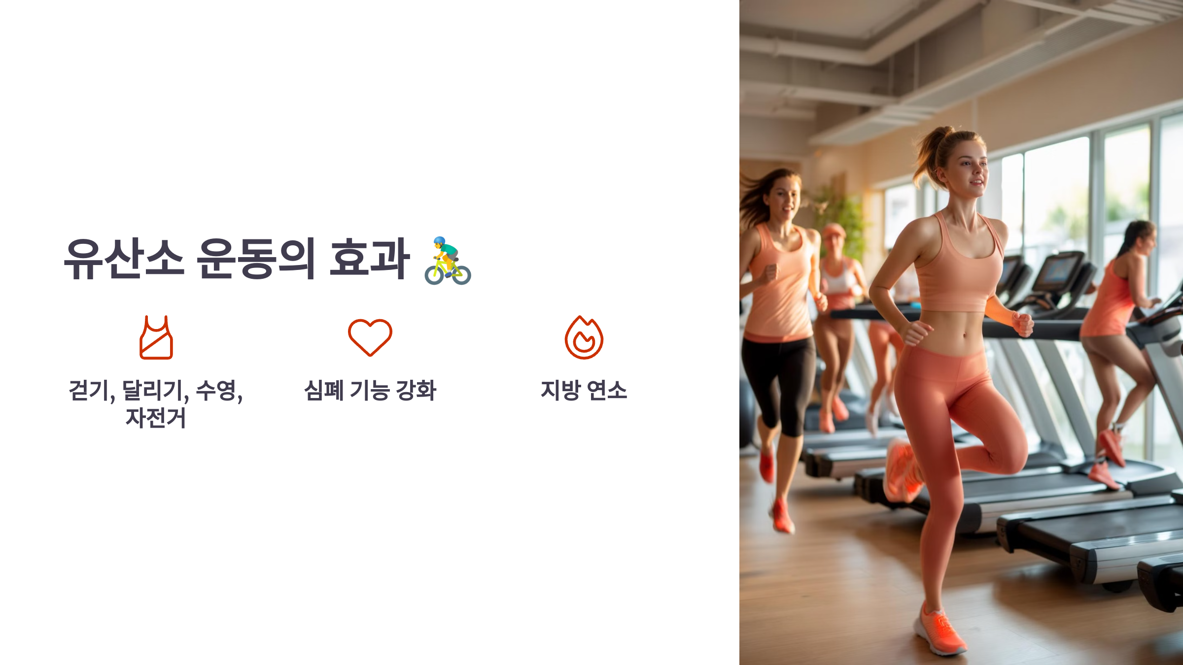✔ 유산소 운동 → 체지방 감소 & 심혈관 건강 개선