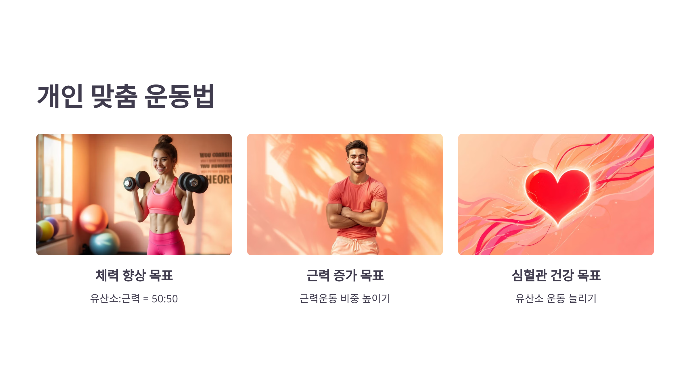 - 심혈관 건강 목표 → 유산소 운동 비중 증가