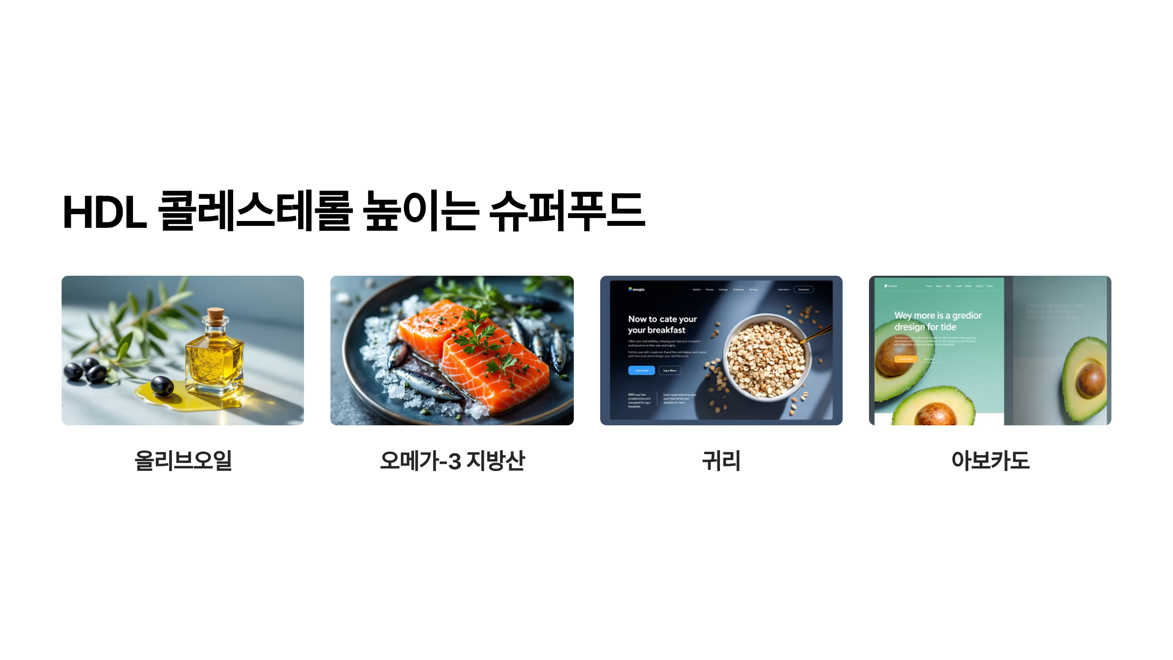 - 건강한 지방 + 항산화 성분 → HDL 상승