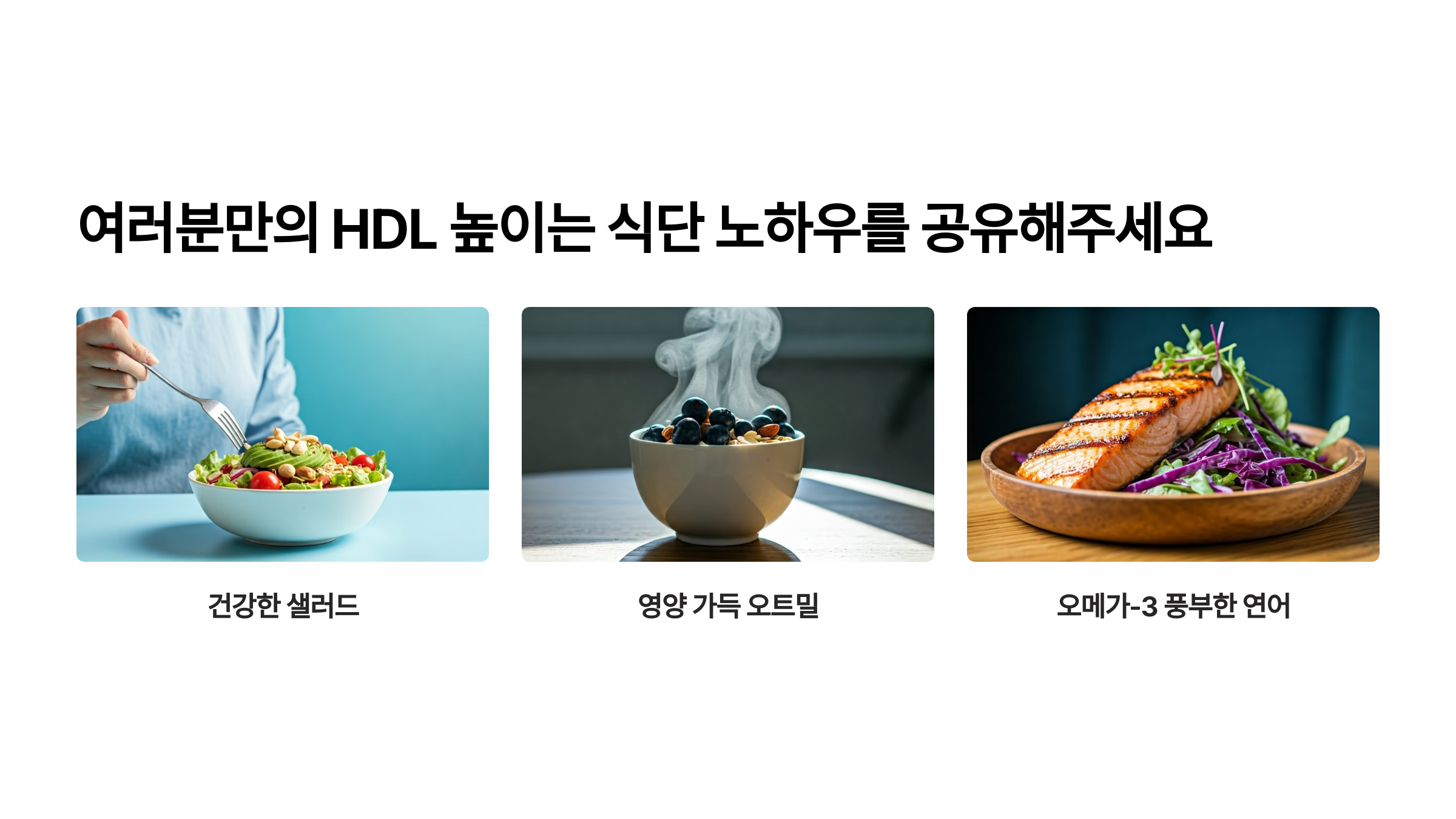오늘 소개해드린 슈퍼푸드 중 하나라도 여러분의 식탁에 올라가고 있다면, 이미 건강을 지키는 첫걸음을 잘 디디고 계신 거예요! 👏 HDL 콜레스테롤은 우리의 혈관을 지키는 든든한 파수꾼입니다. 지금처럼 매일의 식단에 조금씩 신경 쓰는 것만으로도 심장과 혈관 건강은 물론, 전반적인 컨디션까지 좋아질 수 있어요. 저도 매일 아보카도 샐러드에 올리브오일 한 스푼씩 꼭 챙기고 있답니다. 😊 여러분도 댓글로 자신만의 HDL 식단 꿀팁, 공유해 주세요! 함께 건강한 식습관, 만들어가요! 🥗💜