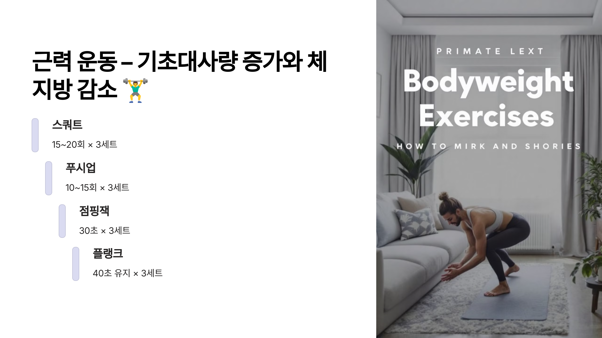 ✅ 기본 근력 운동 루틴 (하루 30~40분)