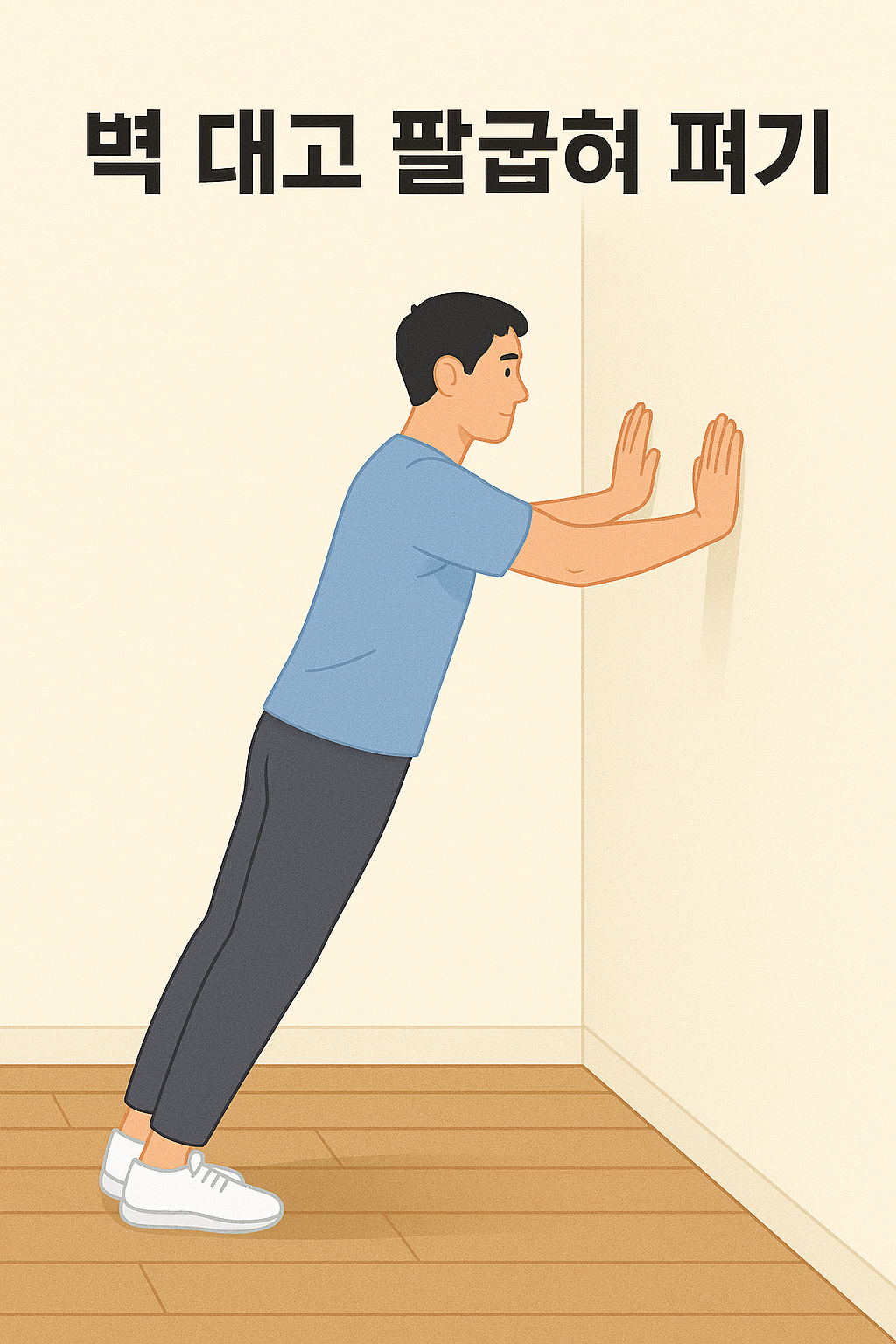 벽에 손을 대고 가볍게 팔굽혀 펴기를 해보세요.