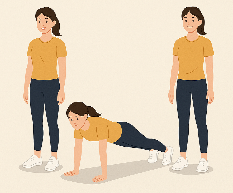 버피 운동은 전신 운동 끝판왕이지만, 초보자 버전이라면 부담 없이 시작할 수 있어요.