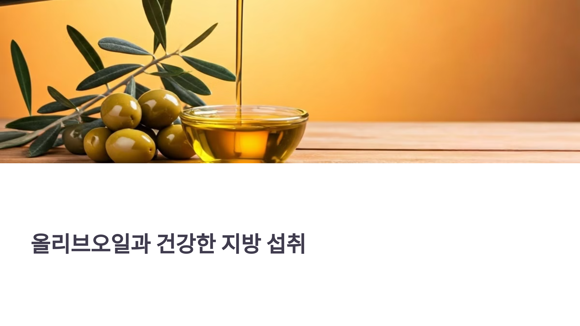 올리브오일은 대표적인 모노불포화 지방산으로, 콜레스테롤 수치 개선과 심혈관 건강에 정말 좋아요.