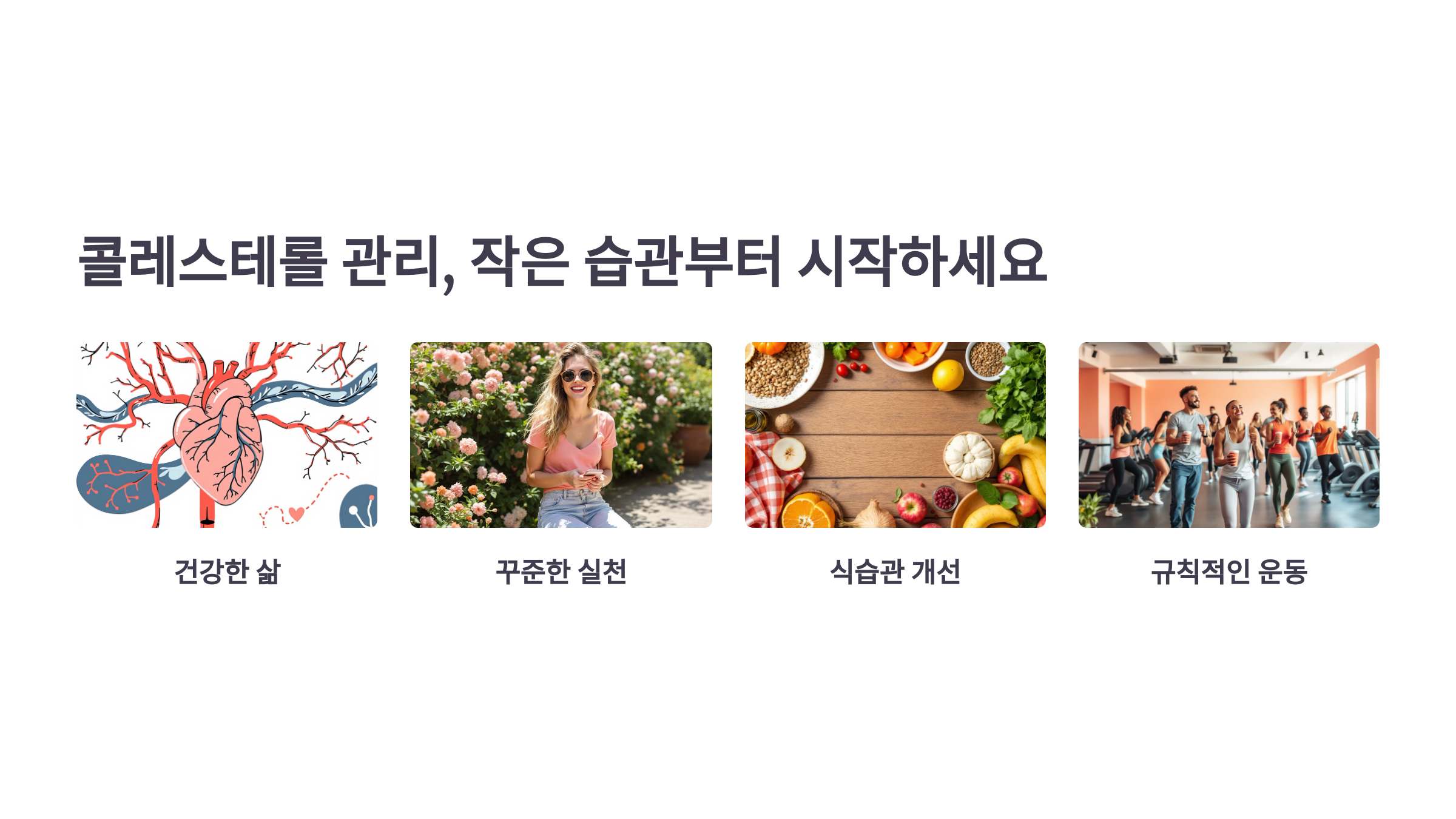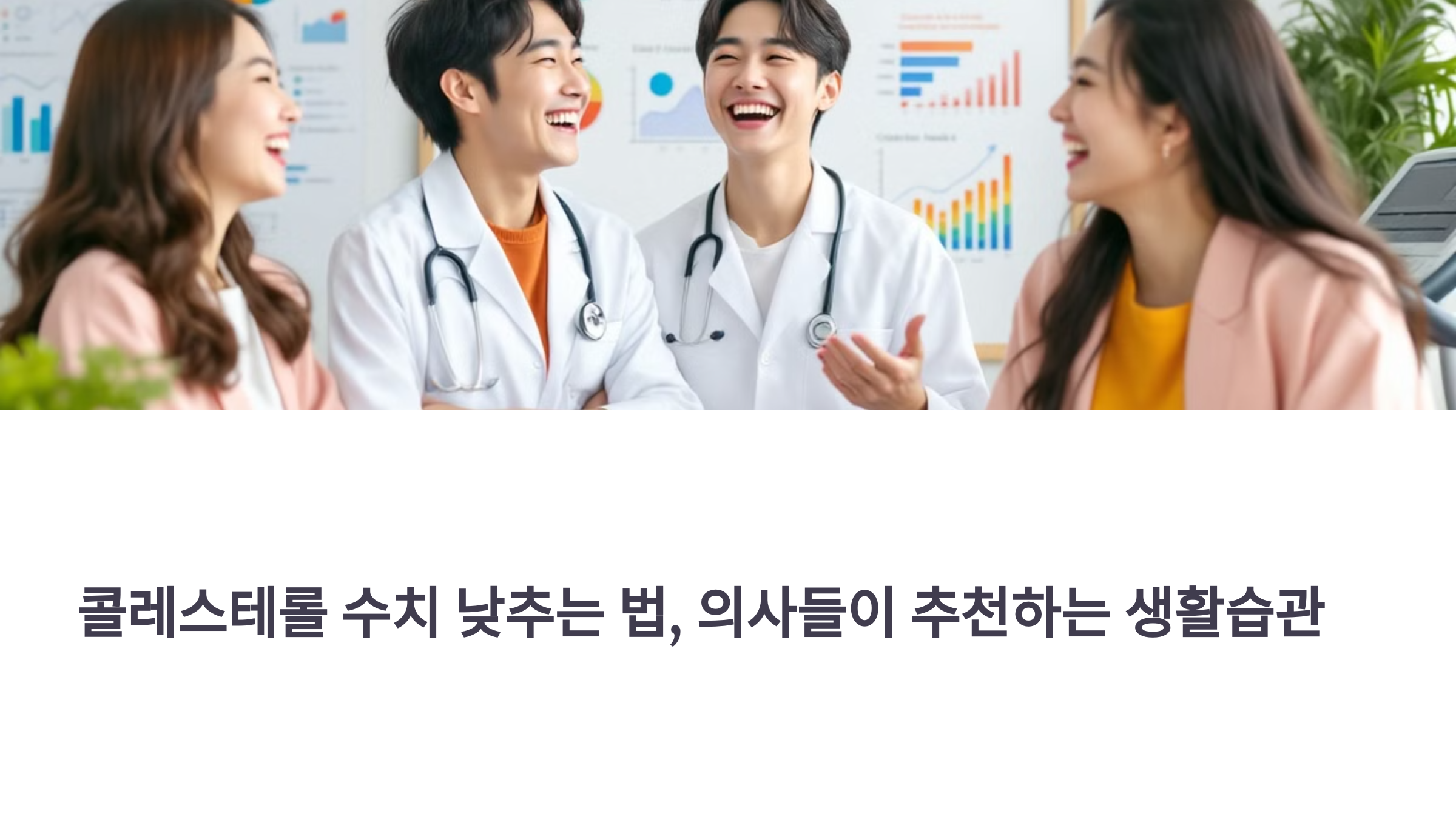 "건강검진에서 콜레스테롤 수치가 높다고요? 걱정 마세요! 생활습관만 바꿔도 자연스럽게 조절할 수 있습니다."