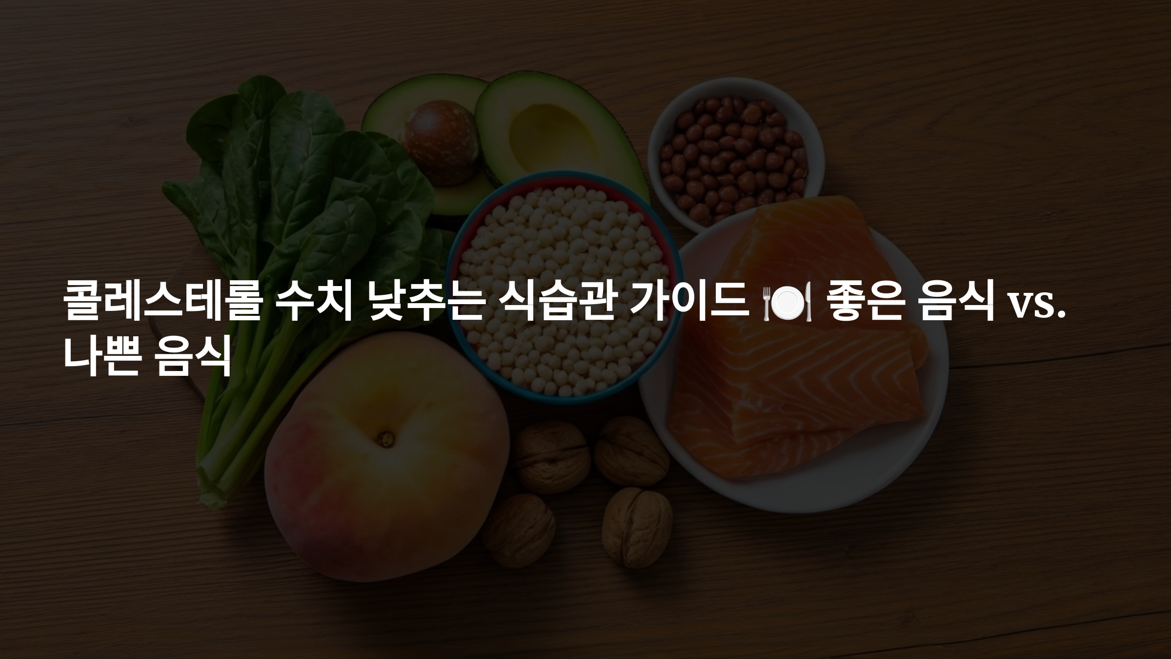 그 중에서도 식습관은 가장 쉽고 실천 가능한 변화의 시작이에요. 저도 콜레스테롤 수치를 낮추기 위해 기름진 음식 줄이고, 채소 위주의 식사를 시작했는데 확실히 몸이 가벼워지고 피로감도 줄더라고요! 오늘은 콜레스테롤 수치를 낮추는 식습관 가이드와 함께 꼭 먹어야 할 음식 vs. 피해야 할 음식, 그리고 실천 가능한 1주일 식단표까지 알려드릴게요! 🙌