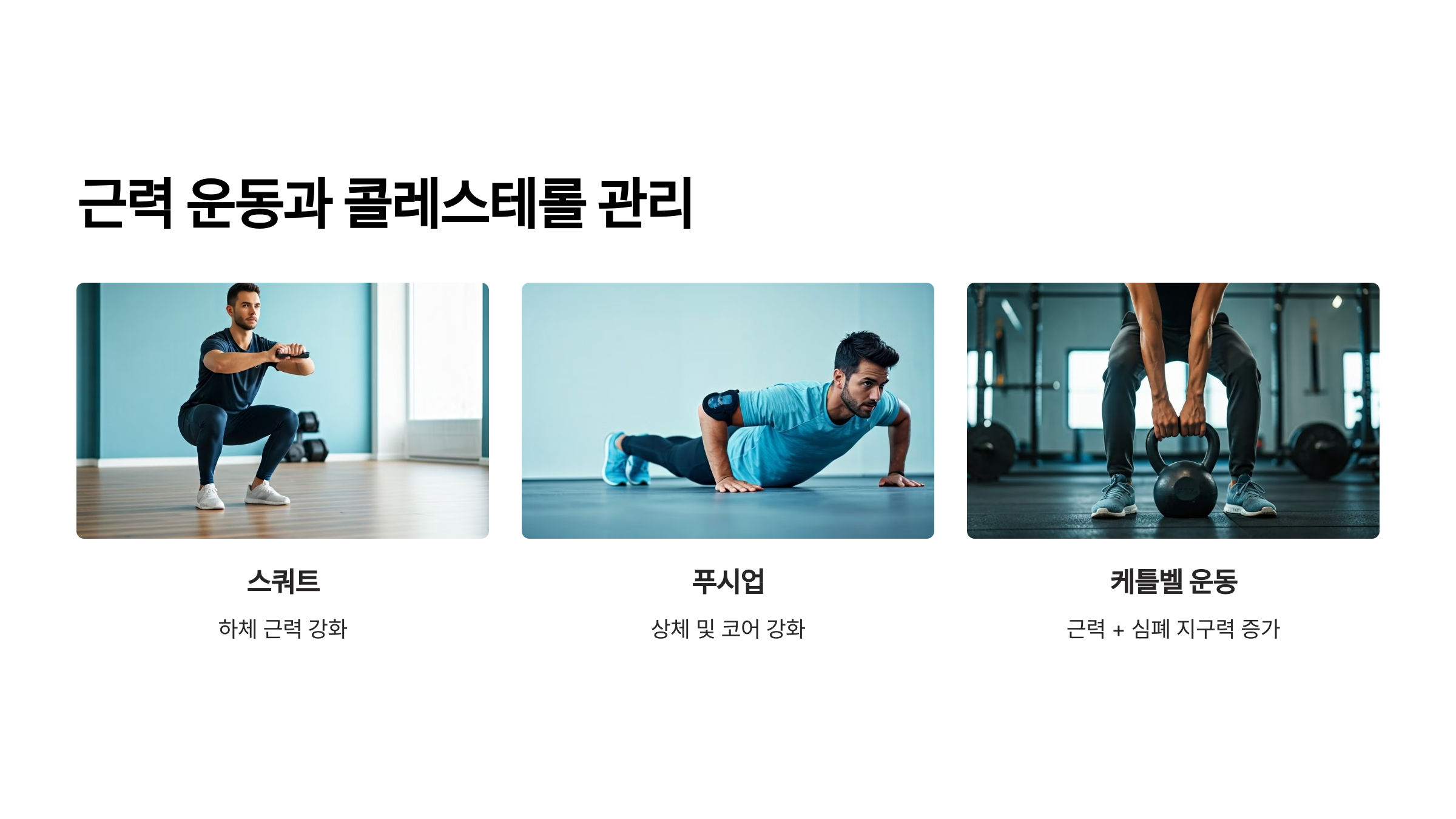 근력 운동도 콜레스테롤 개선에 큰 도움이 됩니다! 💪 근육량이 늘어나면 신진대사가 활발해지고, LDL(나쁜 콜레스테롤) 수치가 감소하며, 전반적인 대사 건강이 향상됩니다.