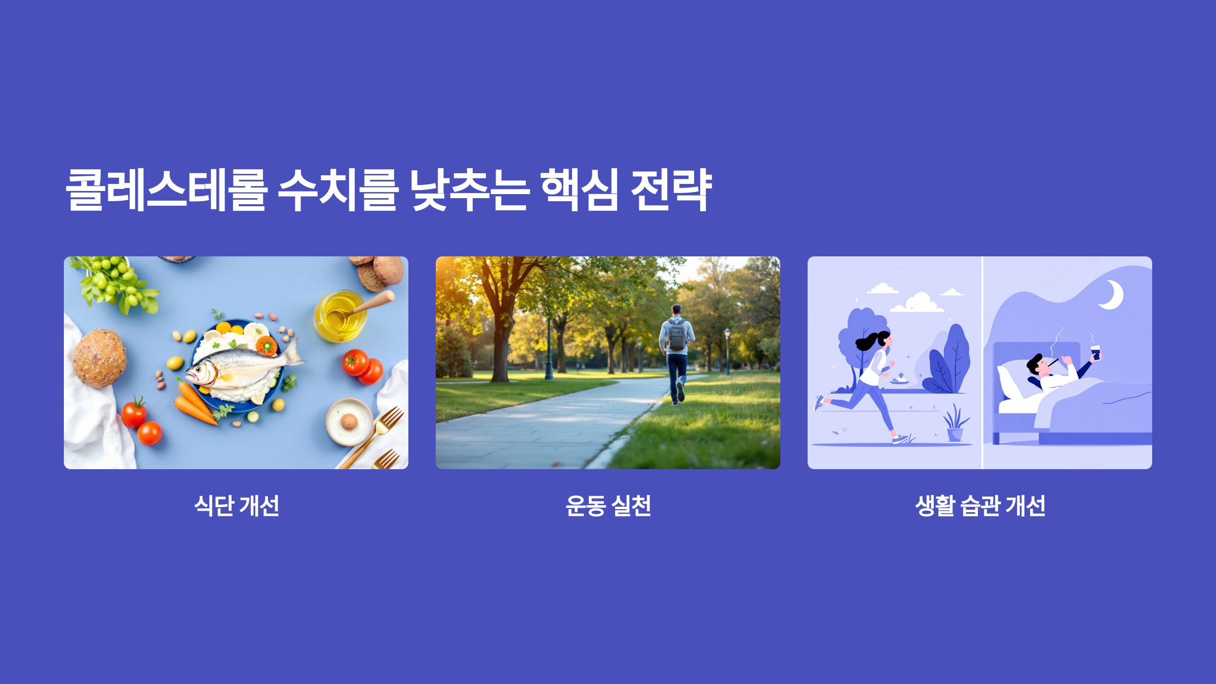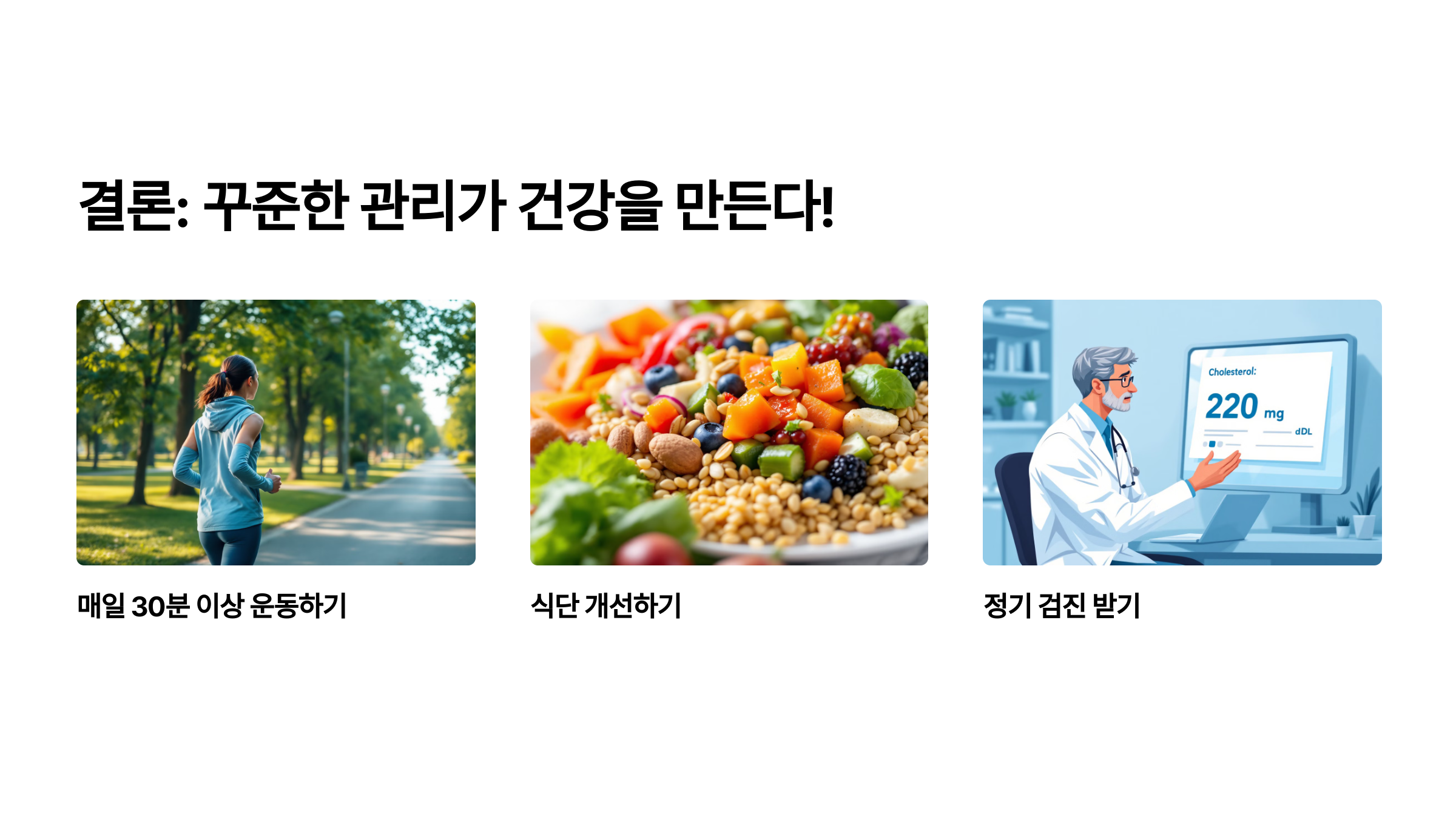 콜레스테롤 수치를 건강하게 유지하는 방법은 의외로 간단해요. 올바른 식단, 운동, 생활 습관을 실천하면 건강한 혈관을 유지할 수 있습니다!