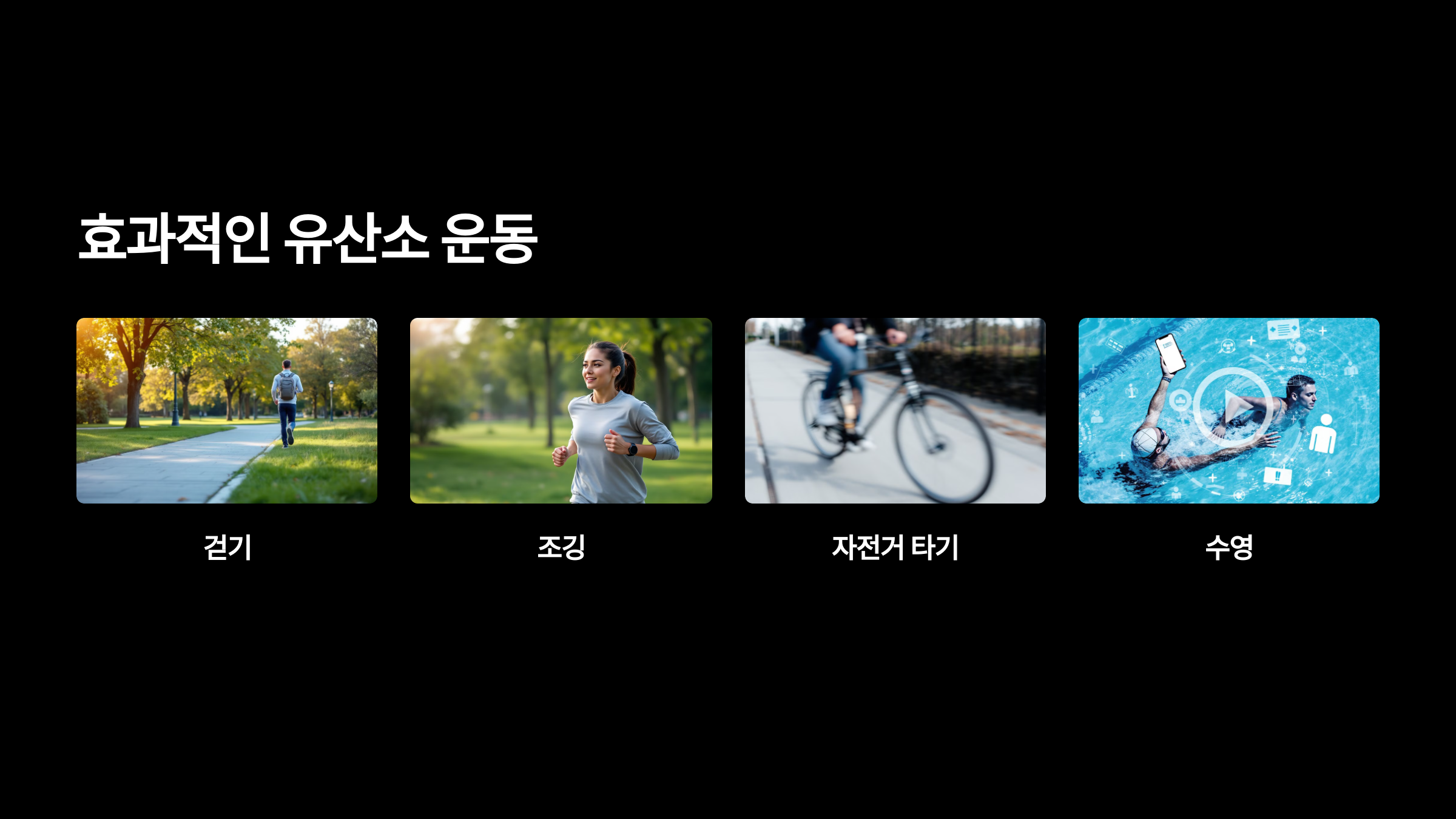 👉 빠르게 걷기, 조깅, 자전거 타기, 수영 같은 유산소 운동이 가장 효과적이에요. 여기에 근력 운동을 병행하면 효과가 더 좋아집니다.