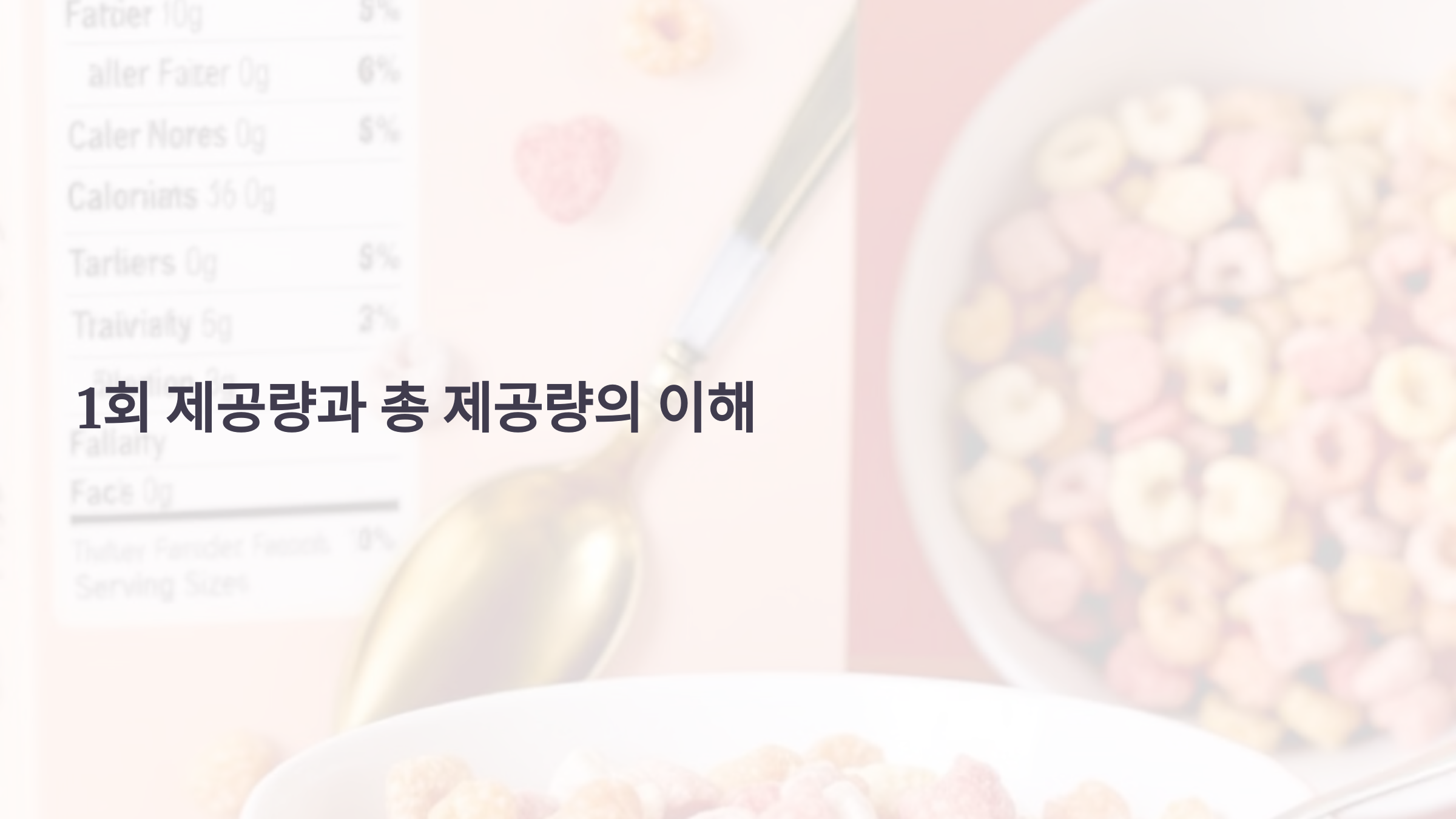 하지만 대부분 제품은 한 봉지 안에 여러 회 제공량이 들어 있어요! 예를 들어, 어떤 시리얼이 1회 제공량 40g에 180kcal라고 되어 있더라도, 패키지 전체가 160g이라면 모두 먹었을 땐 720kcal가 되는 거예요. 실제 먹는 양을 감안해 계산하는 습관이 필요해요. 🧠