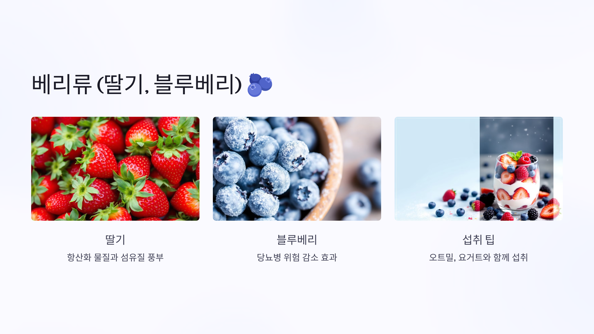 📌 Tip: 블루베리와 딸기를 오트밀, 요거트와 함께 드셔보세요!