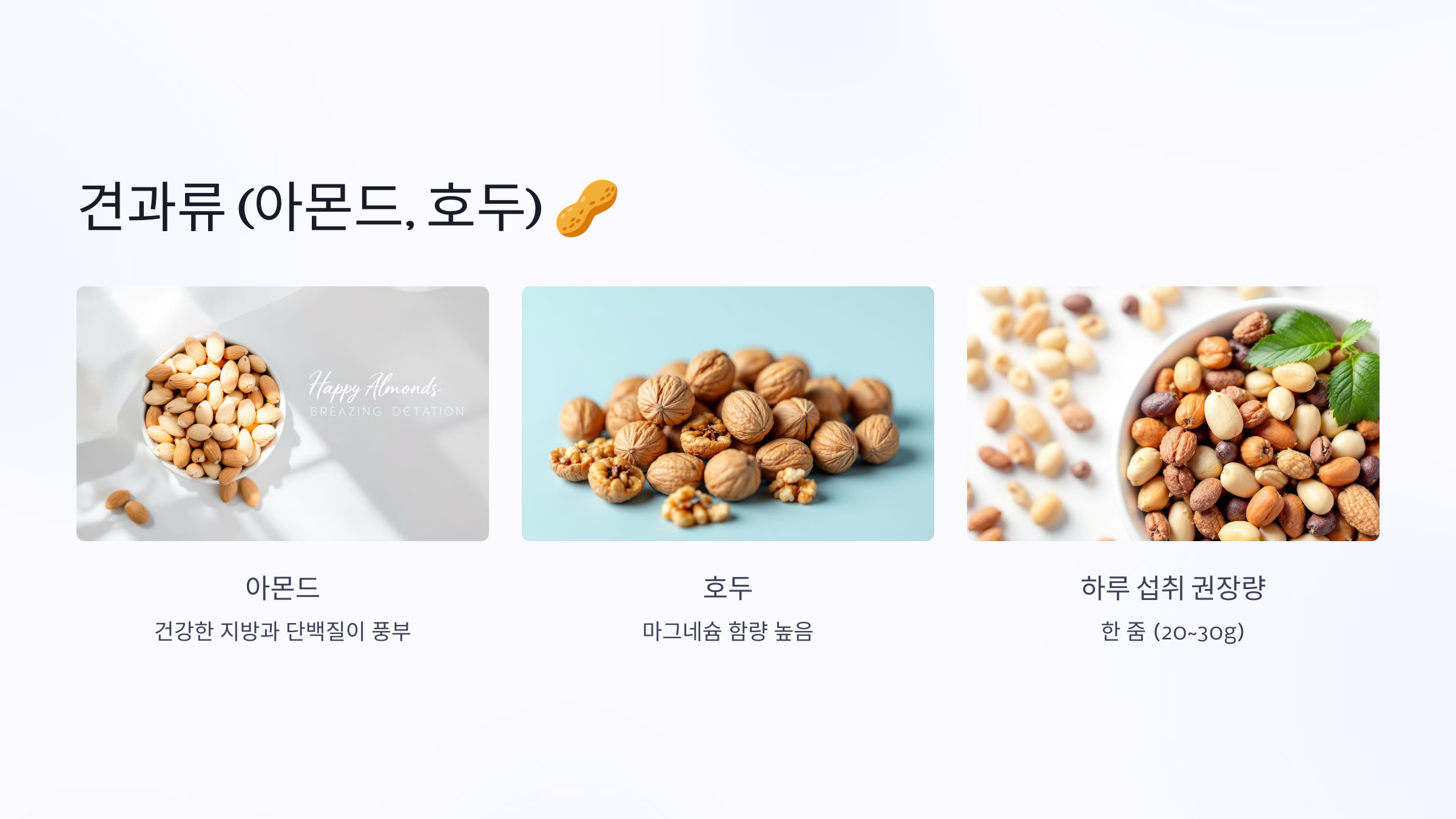 📌 Tip: 하루 한 줌(20~30g) 정도를 간식으로 섭취하세요!