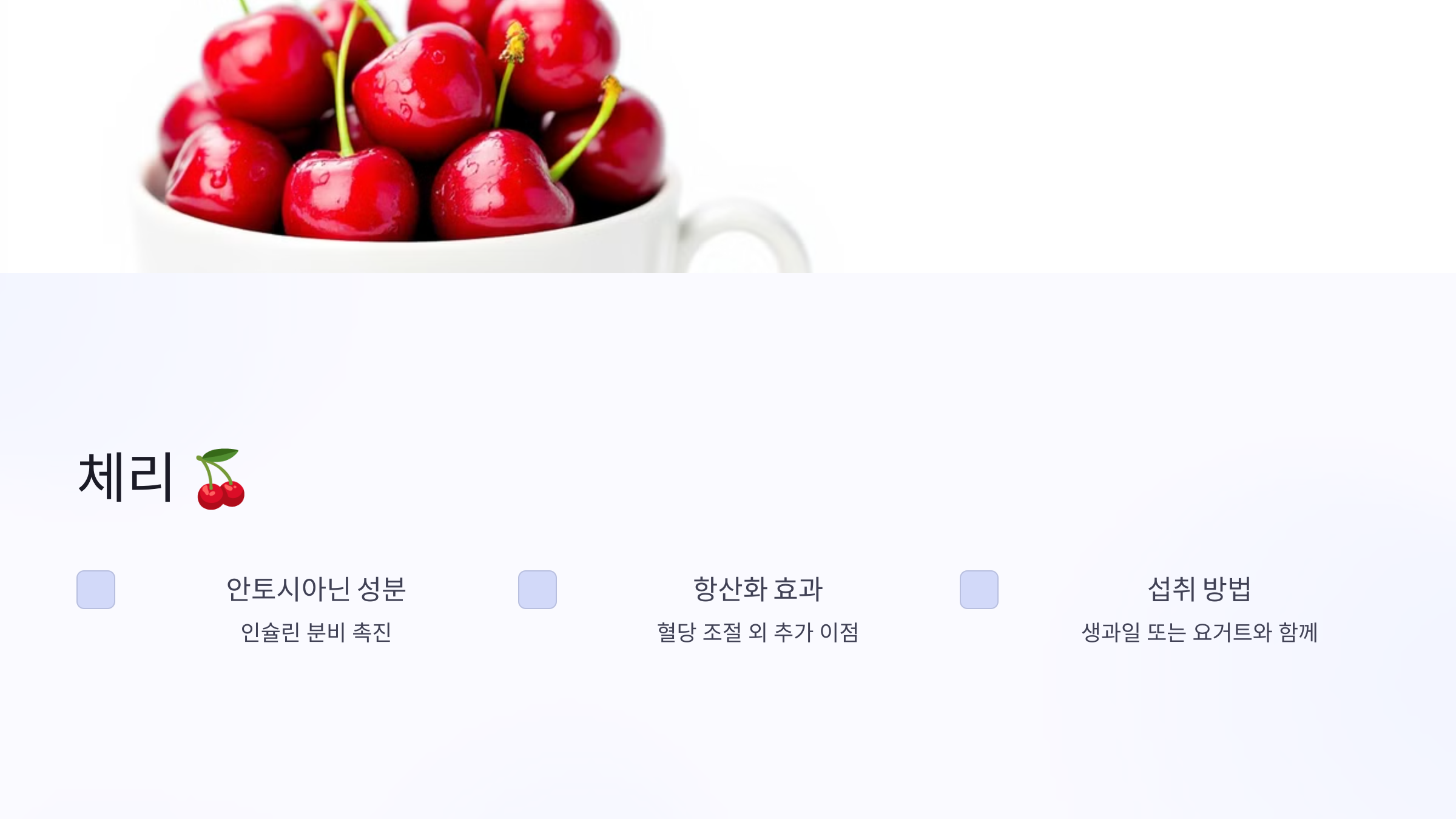 📌 Tip: 체리를 생과일로 먹거나, 요거트와 함께 섭취하세요!