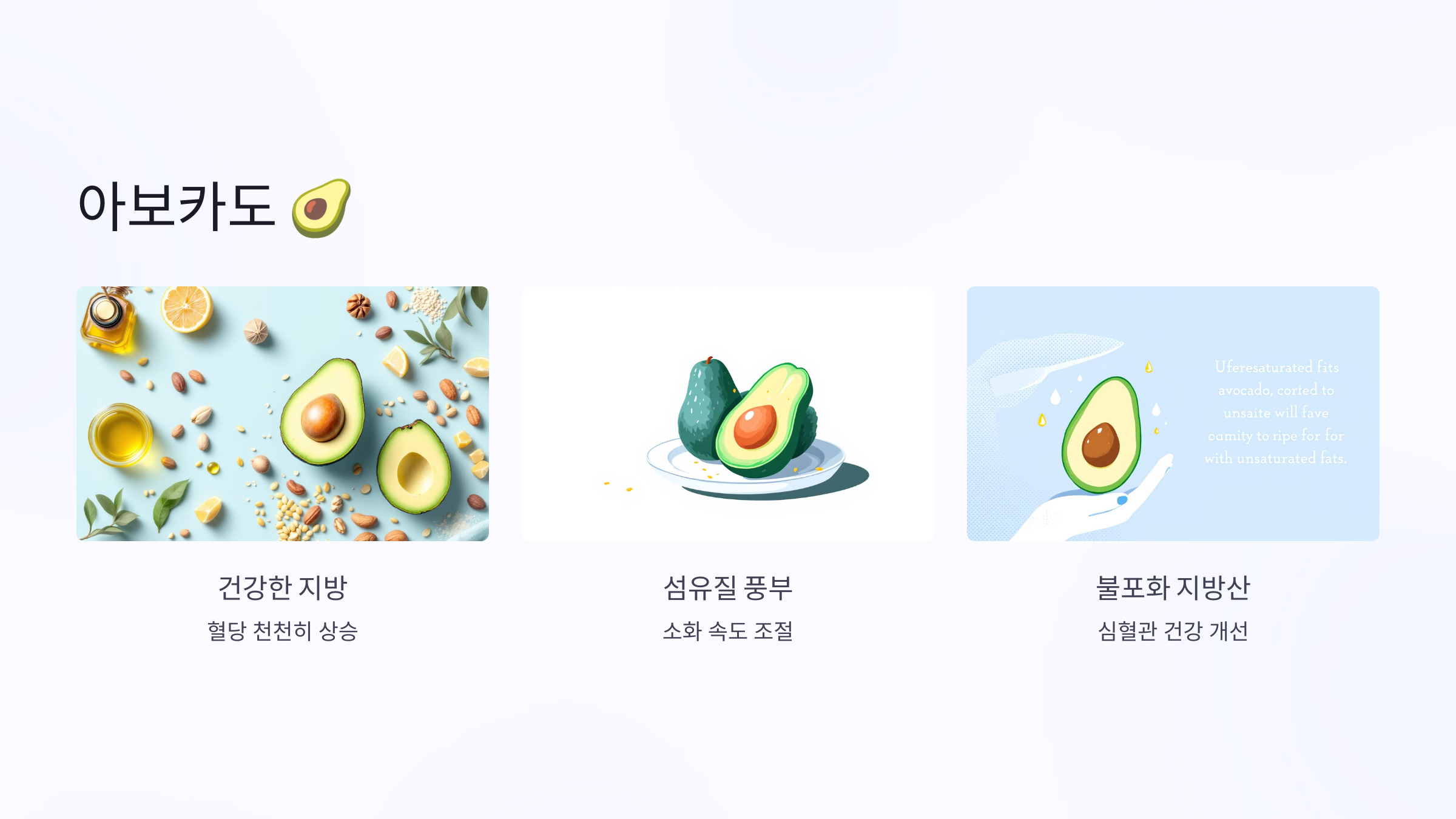📌 Tip: 아보카도를 샐러드에 넣거나, 토스트에 올려 먹어보세요!