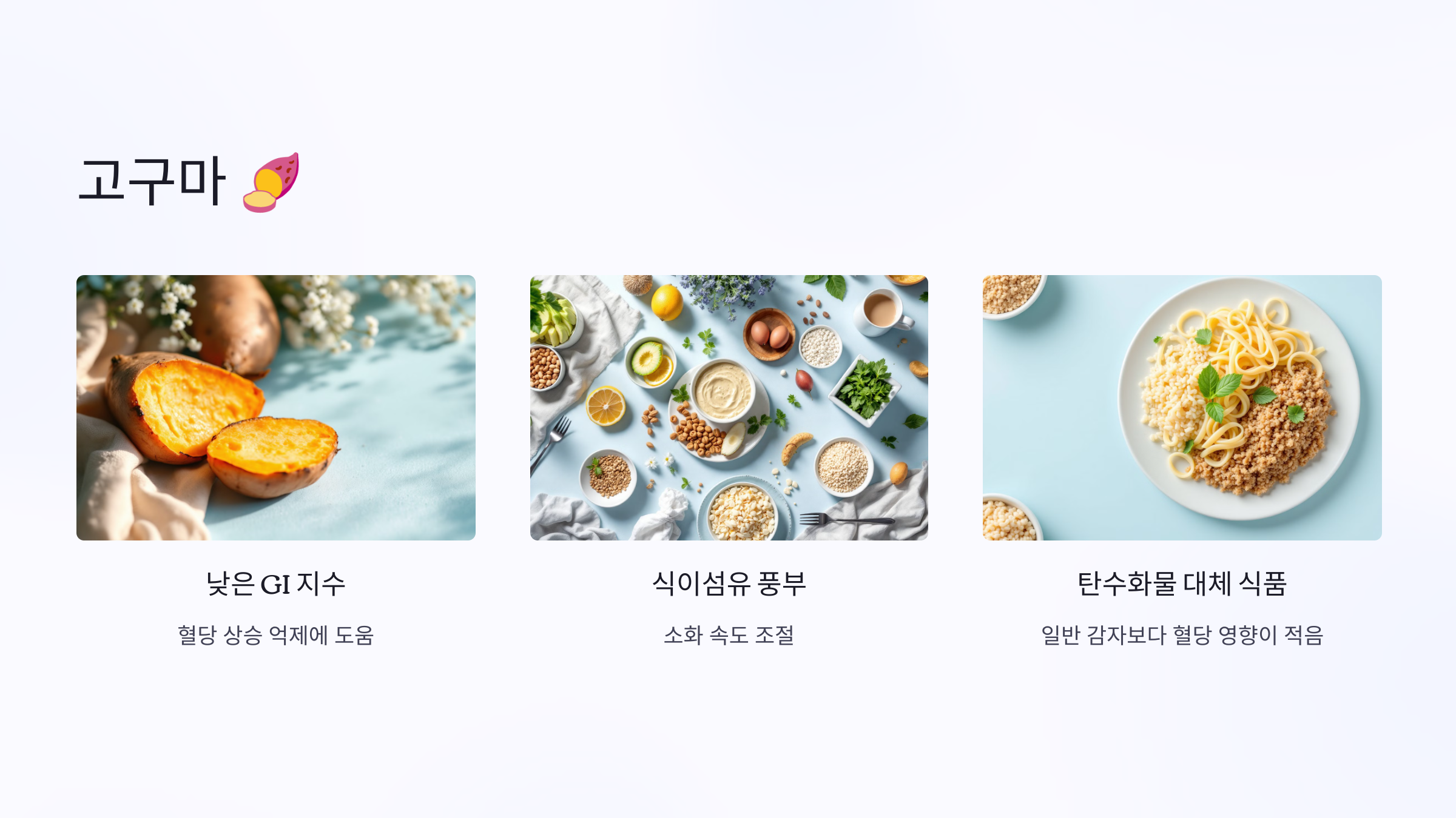 오늘부터 혈당 관리에 좋은 음식을 식단에 추가해보세요! 🍽
