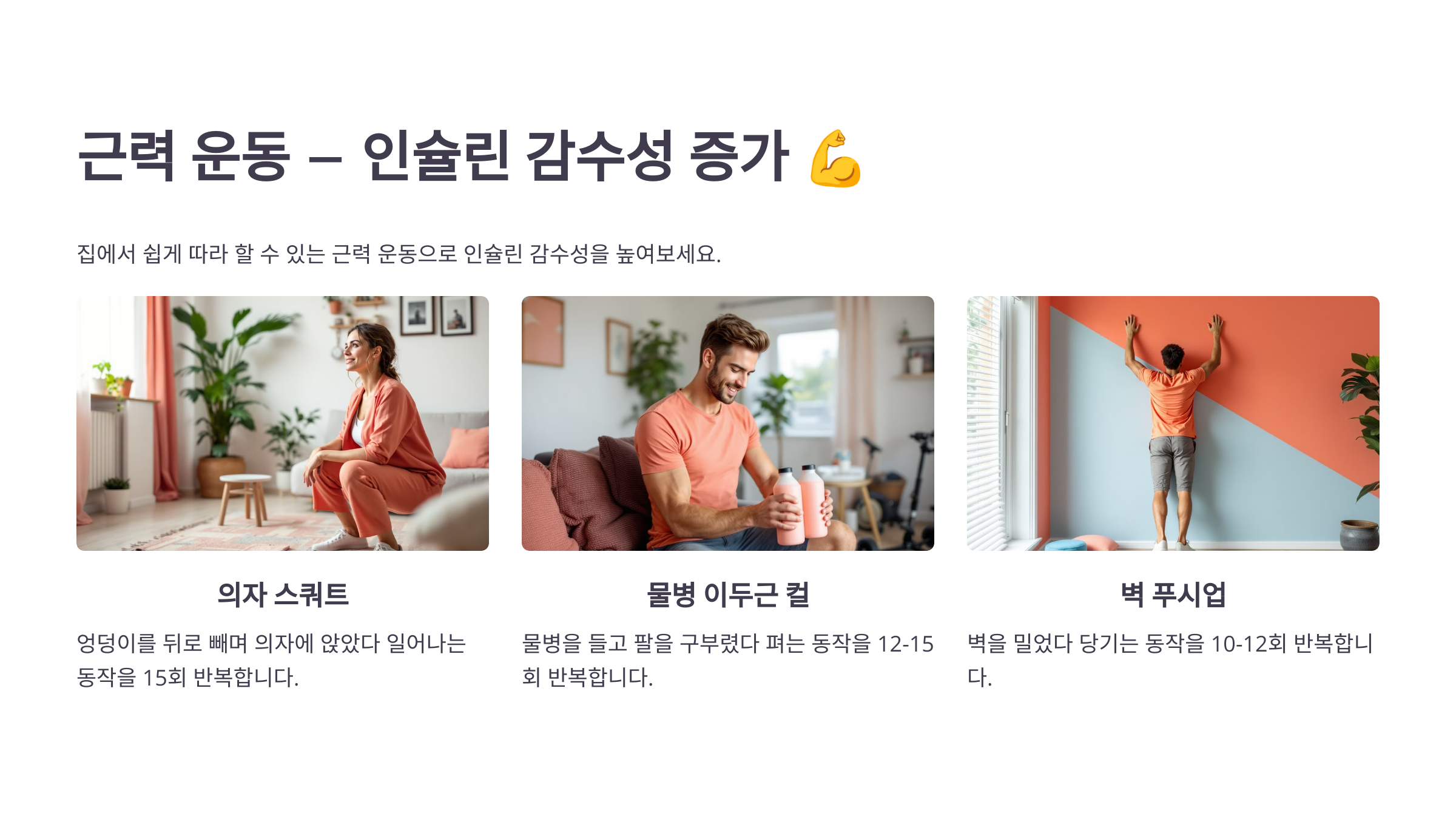 💡 Tip: 근육량을 증가시키면 혈당 조절이 쉬워져요! 하루 10~15분씩만 꾸준히 실천해도 큰 효과를 볼 수 있습니다. 💪