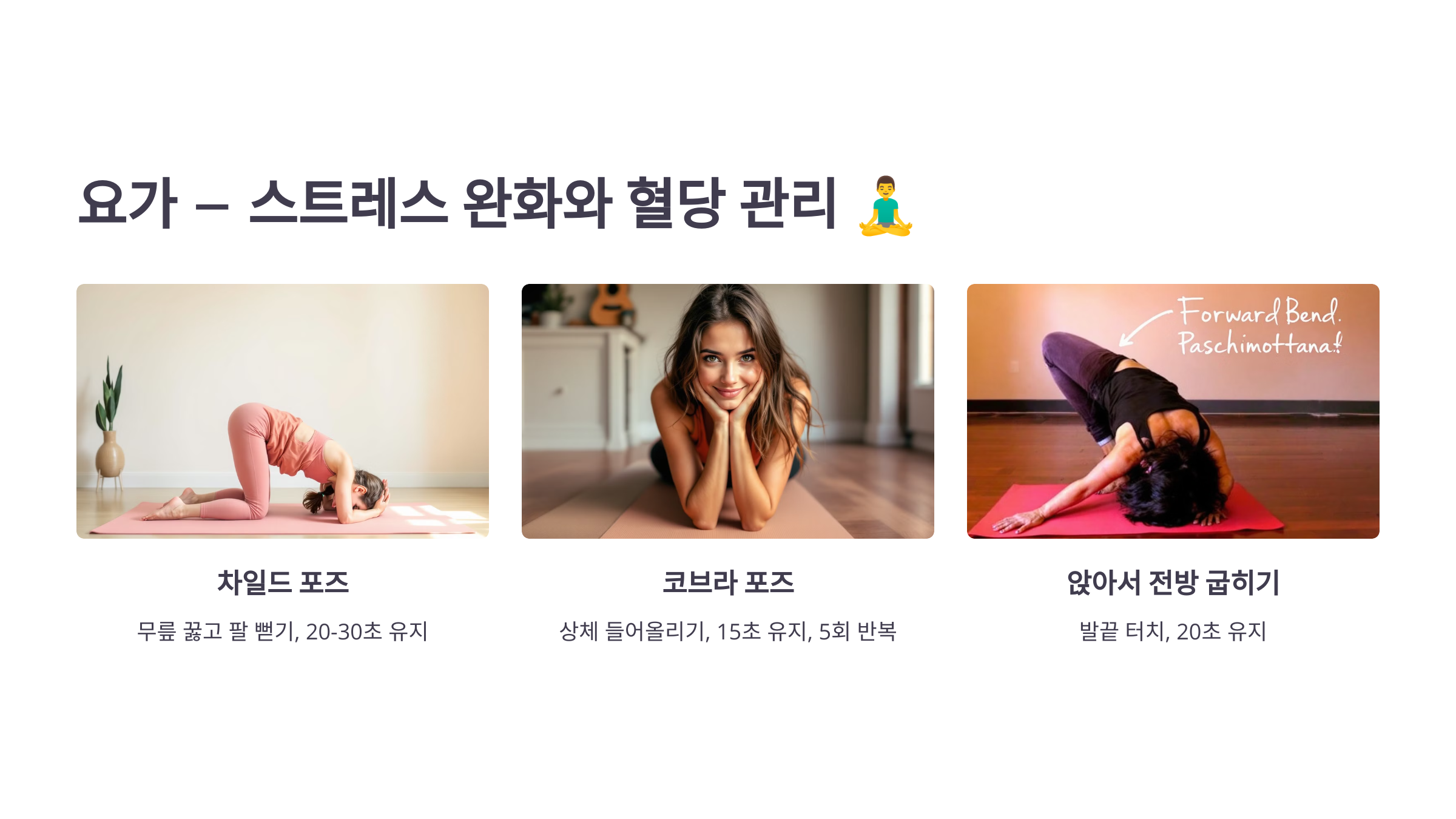 💡 Tip: 요가는 하루 10분만 해도 혈당 관리에 도움이 됩니다! 스트레스 해소와 유연성 향상에도 효과적이니, 꾸준히 실천해보세요! 🧘♀️