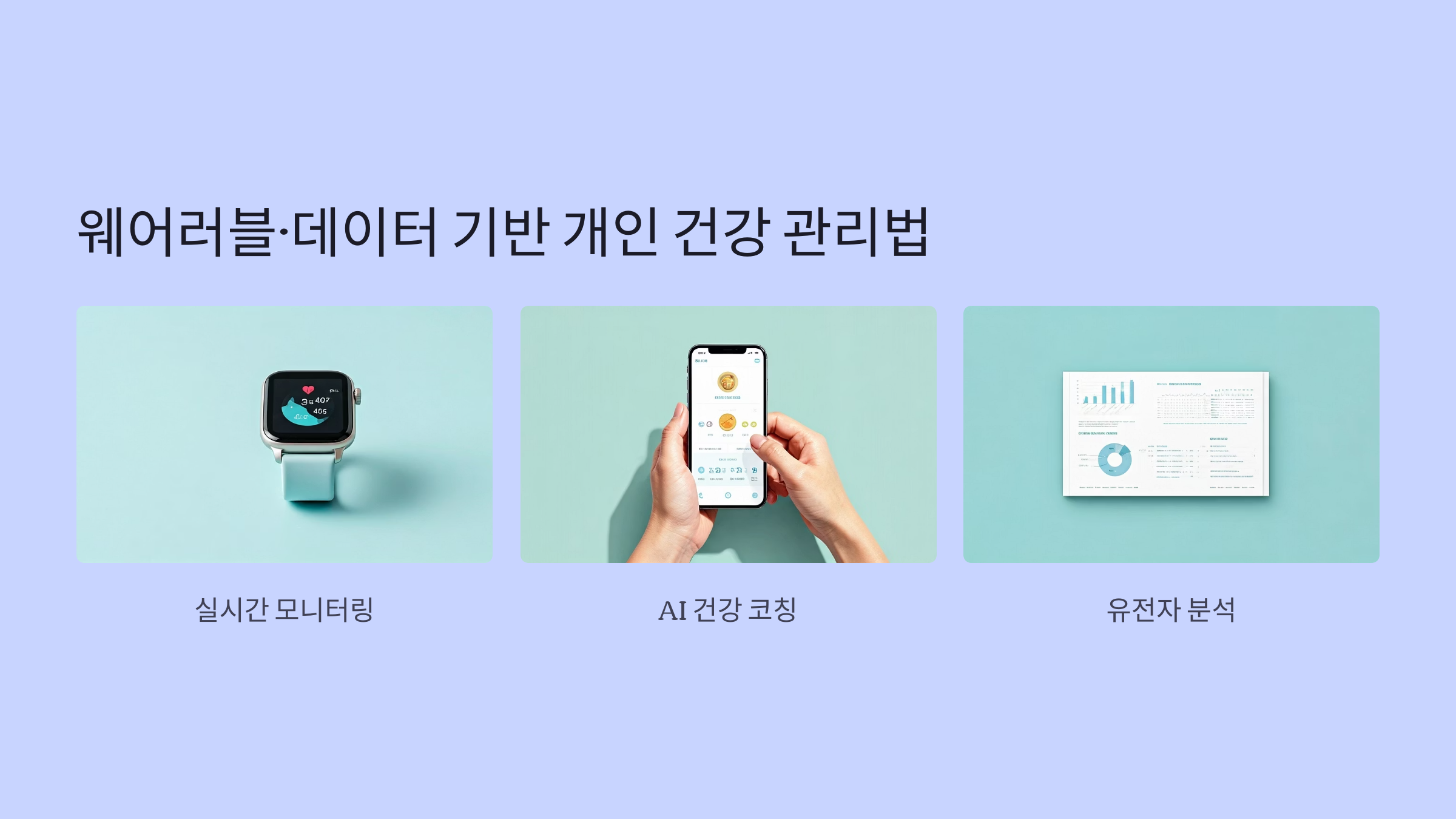 요즘은 스마트워치, 혈당 측정기, 수면 트래커 등 다양한 웨어러블 기기를 통해 내 건강 상태를 실시간으로 분석할 수 있어요.