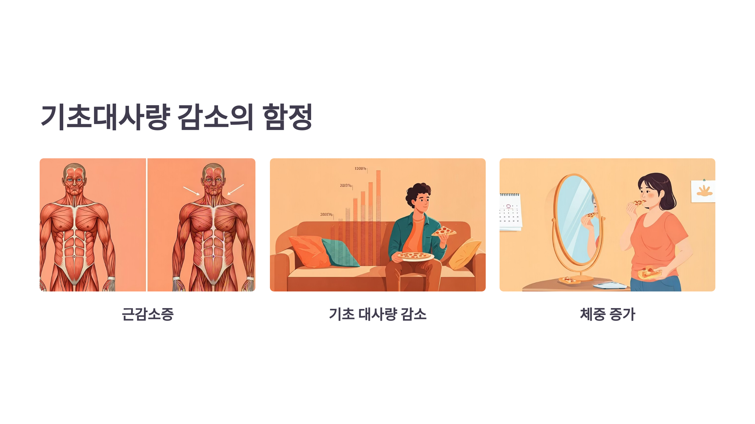 기초대사량(BMR) 감소는 물론, 호르몬 불균형까지 겹쳐서 체중 관리가 정말 어려워지죠.