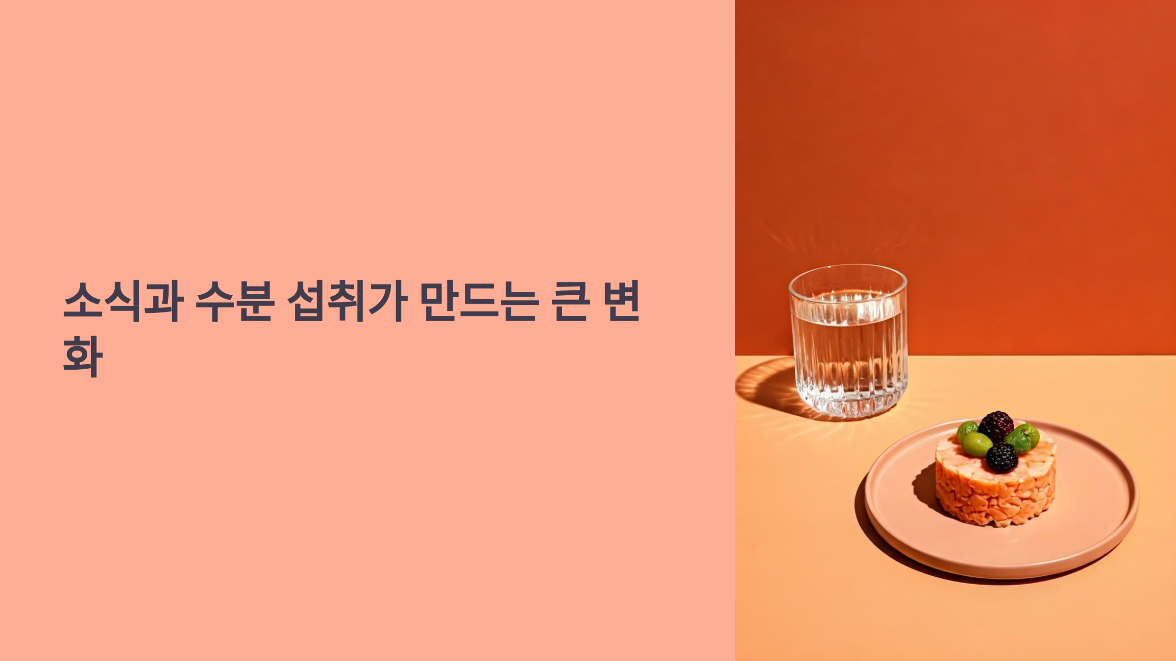 - 수분: 하루 1.5~2L 물 꼭 챙기기